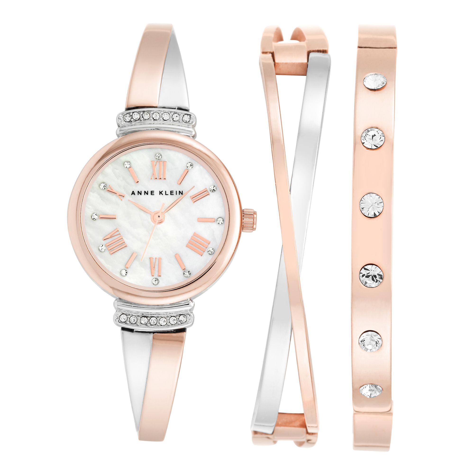 Anne Klein Premium Crystal Accented Bangle Watch Set