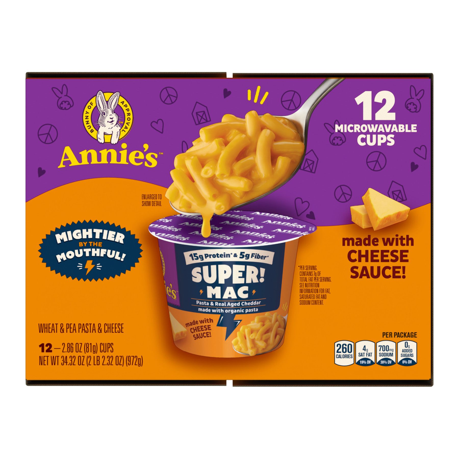 Annie's Real Aged Cheddar Microwavable Mac & Cheese, Supermac Protein Cups, 12 ct./2.86 oz.