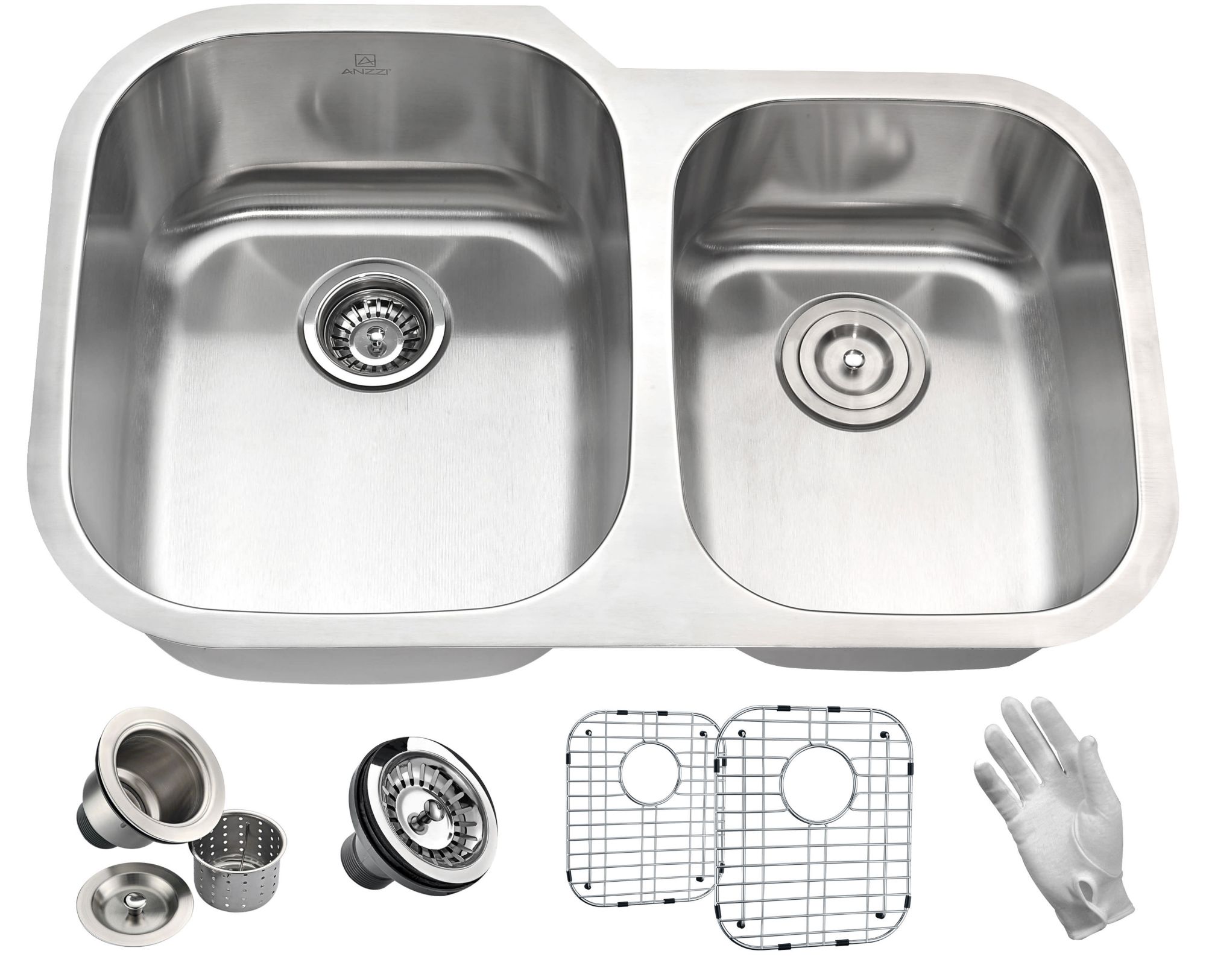 ANZZI Moore 32" x 20" Kitchen Sink - Brushed Silver