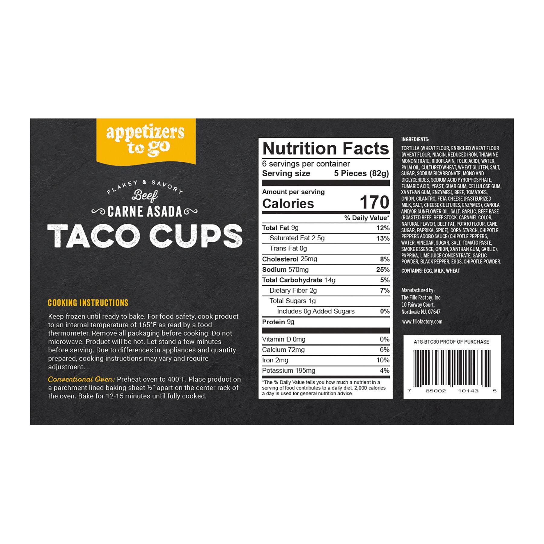 Appetizers To Go Carne Asada Taco Cups, Frozen, 30 ct.