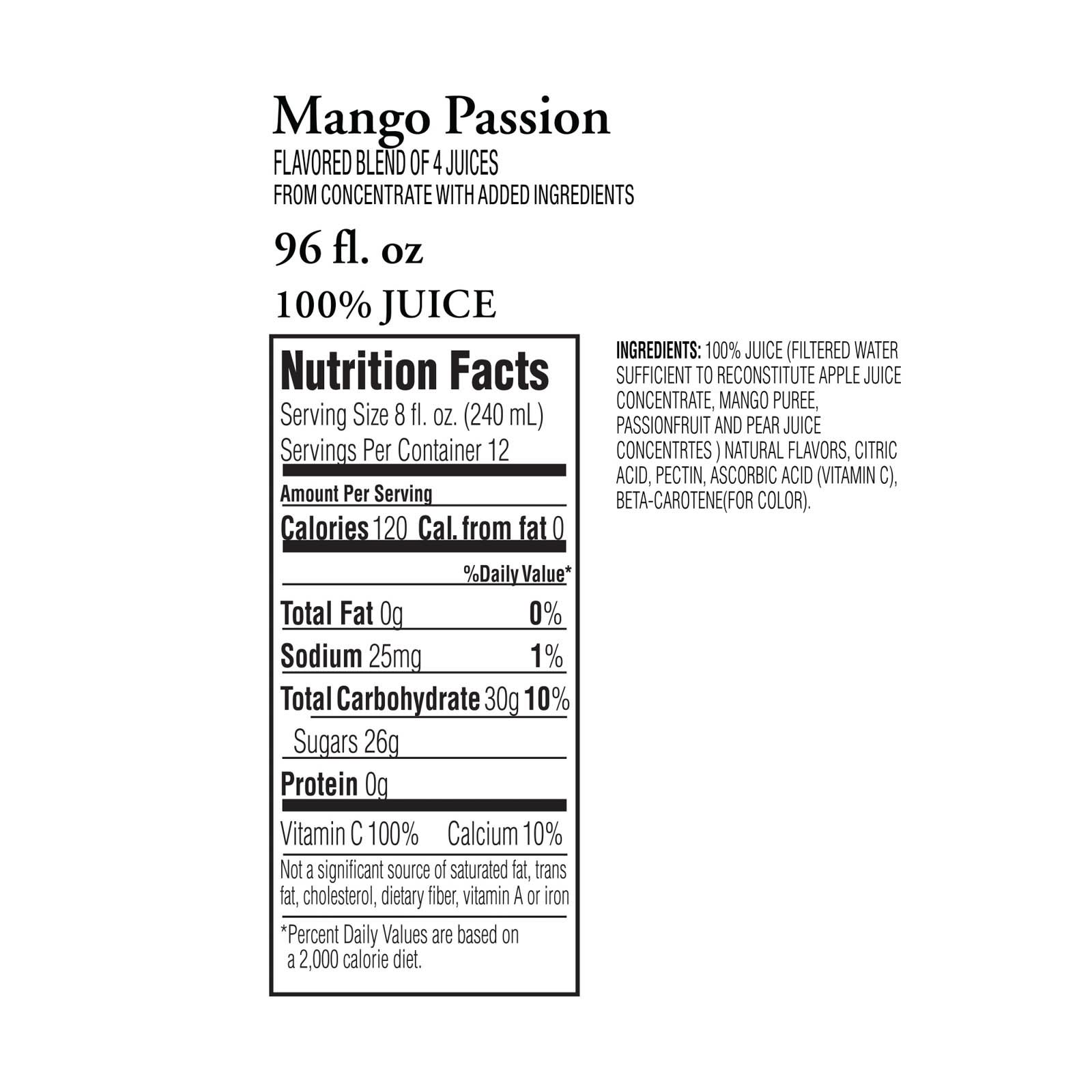 Apple & Eve Mango Passion juice blend is a delicious combination of 100% pure juices with luscious mango and bright delicious passion fruit.