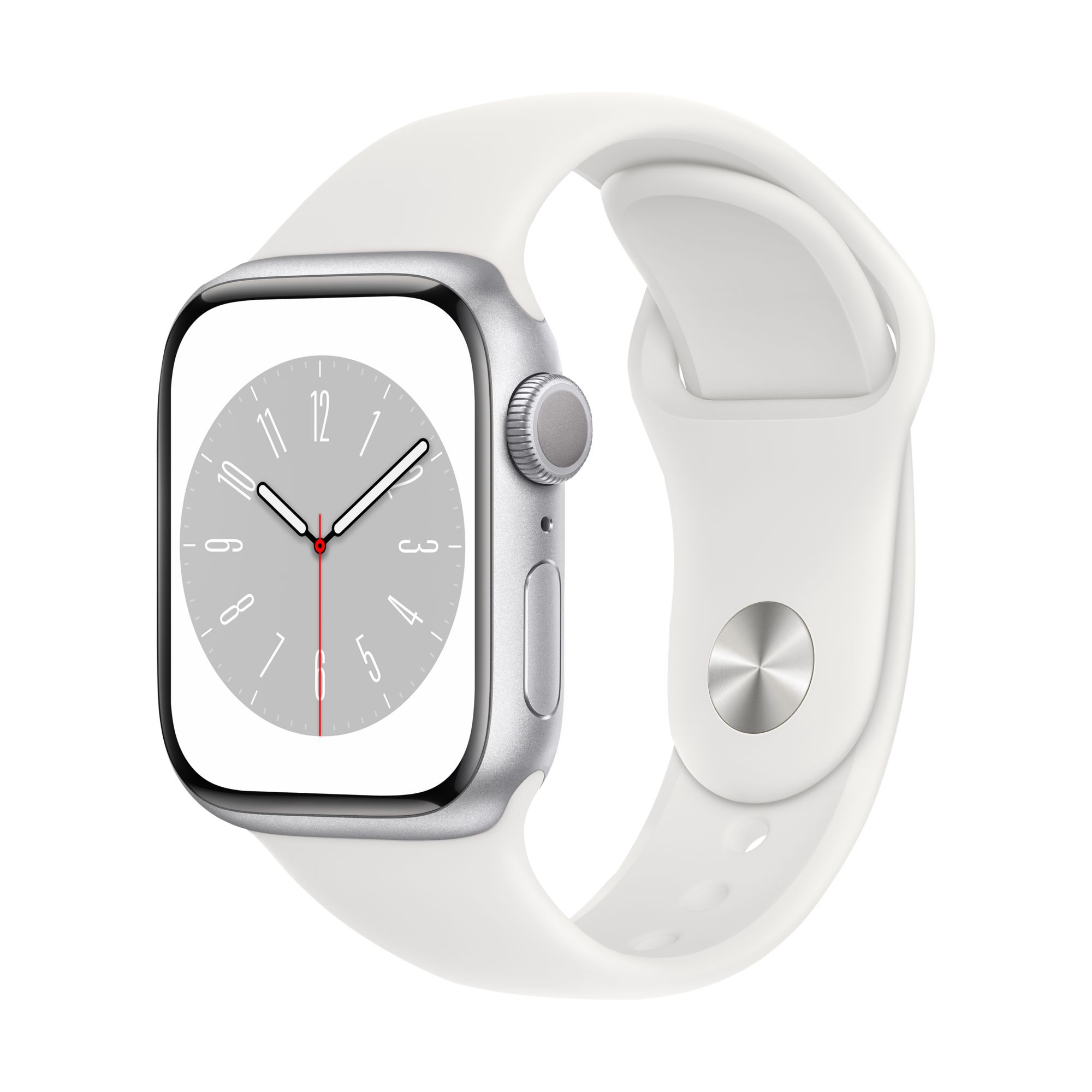 Apple Watch Series 8 GPS with Silver Aluminum Case, 41mm - White Sport Band