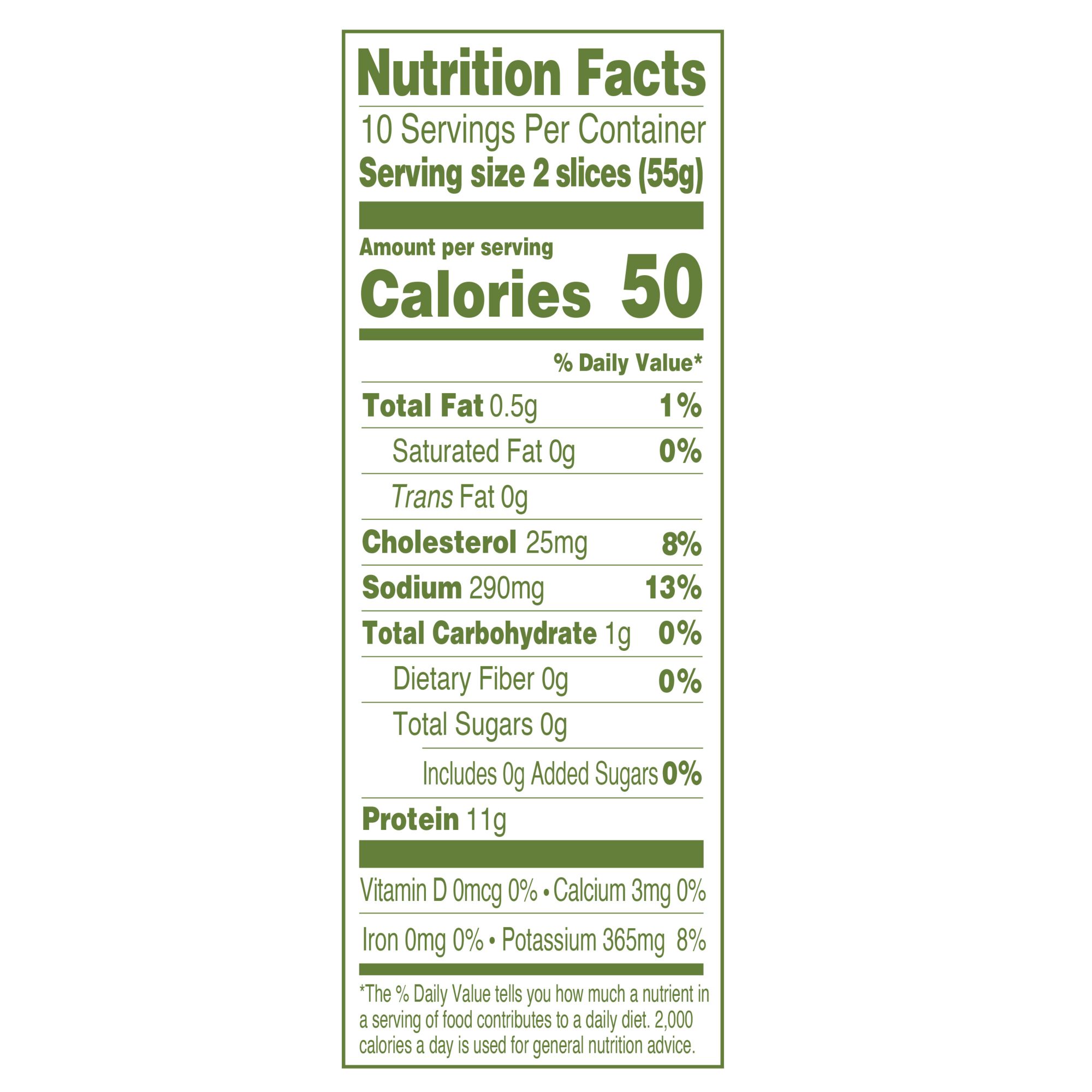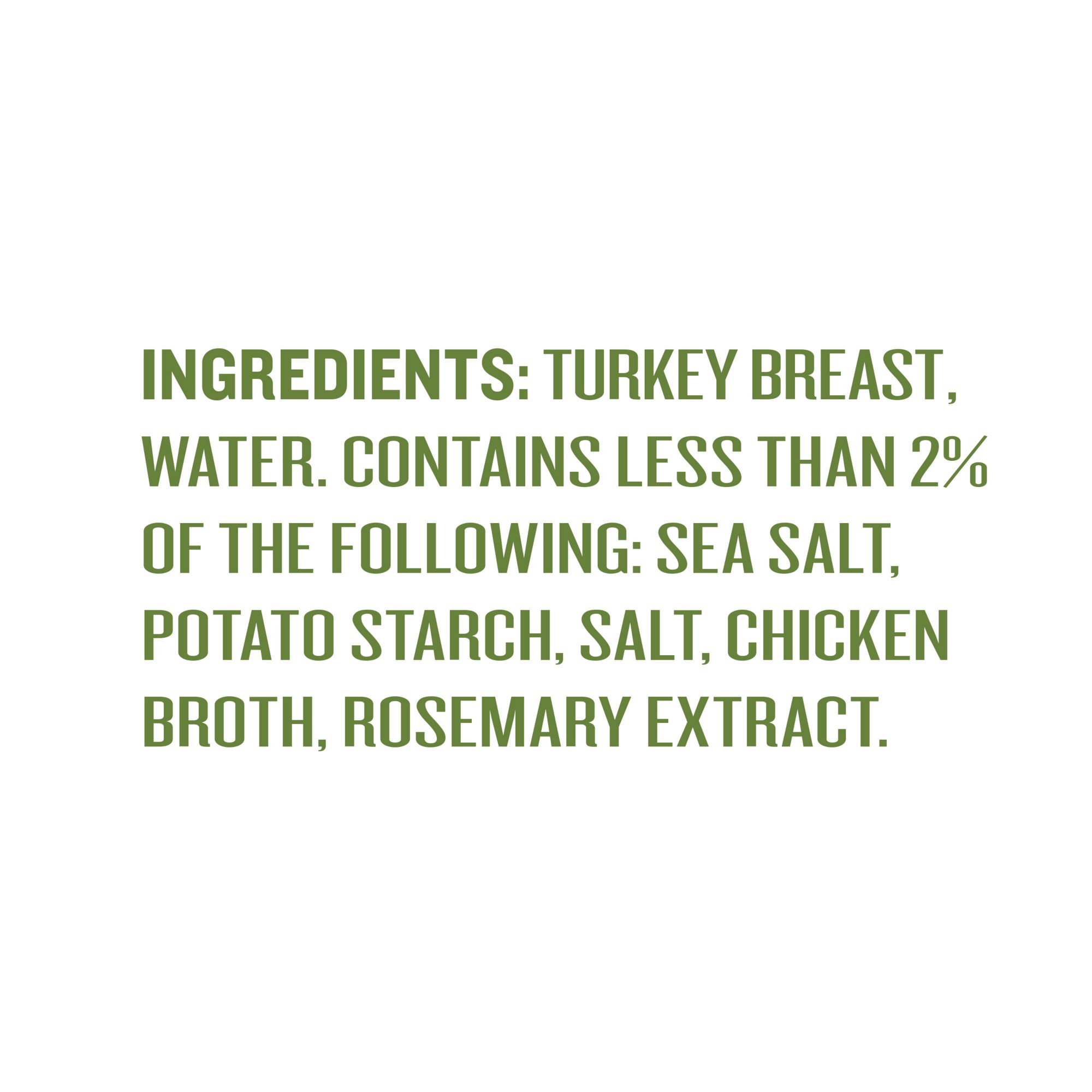 Ingredients: Turkey Breast***, Water, Contains Less than 2% of the Following: Sea Salt, Potato Starch, Salt, Chicken Broth, Rosemary Extract. ***Turkey never administered antibiotics or fed animal by-products.