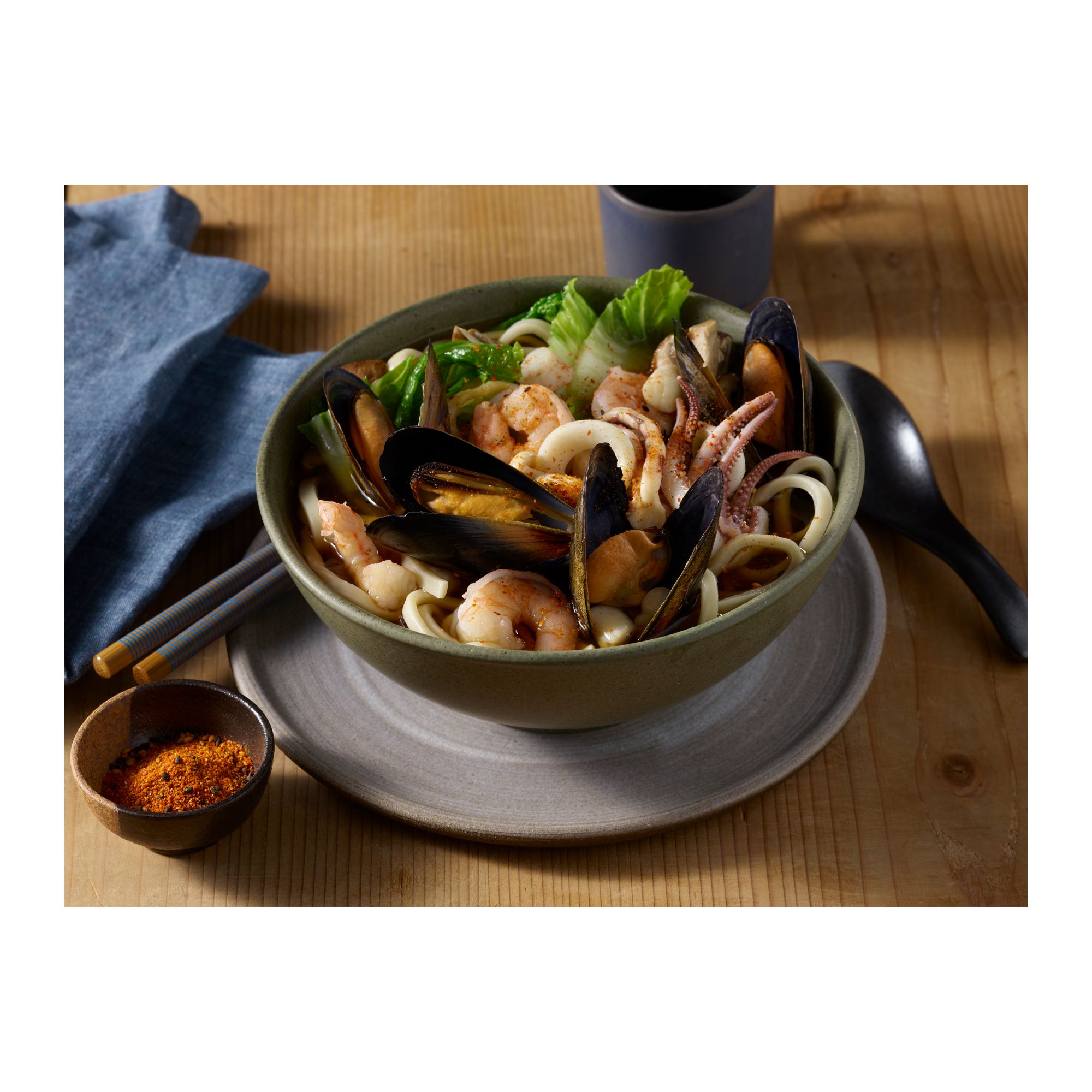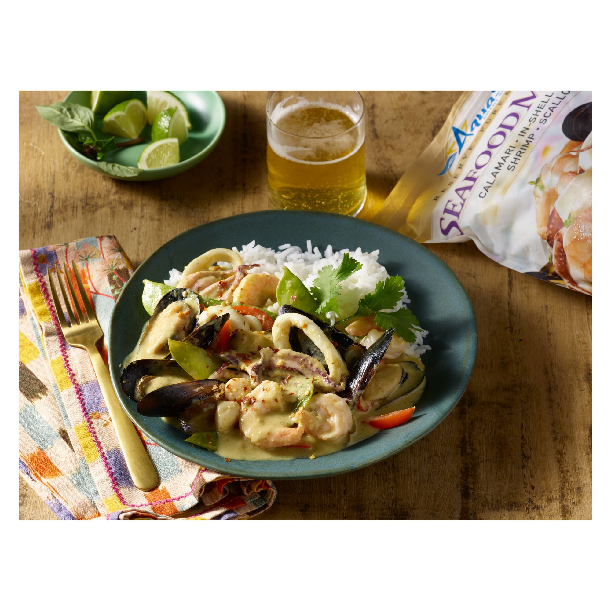 Savory mix of calamari, in-shell mussels, shrimp and scallops