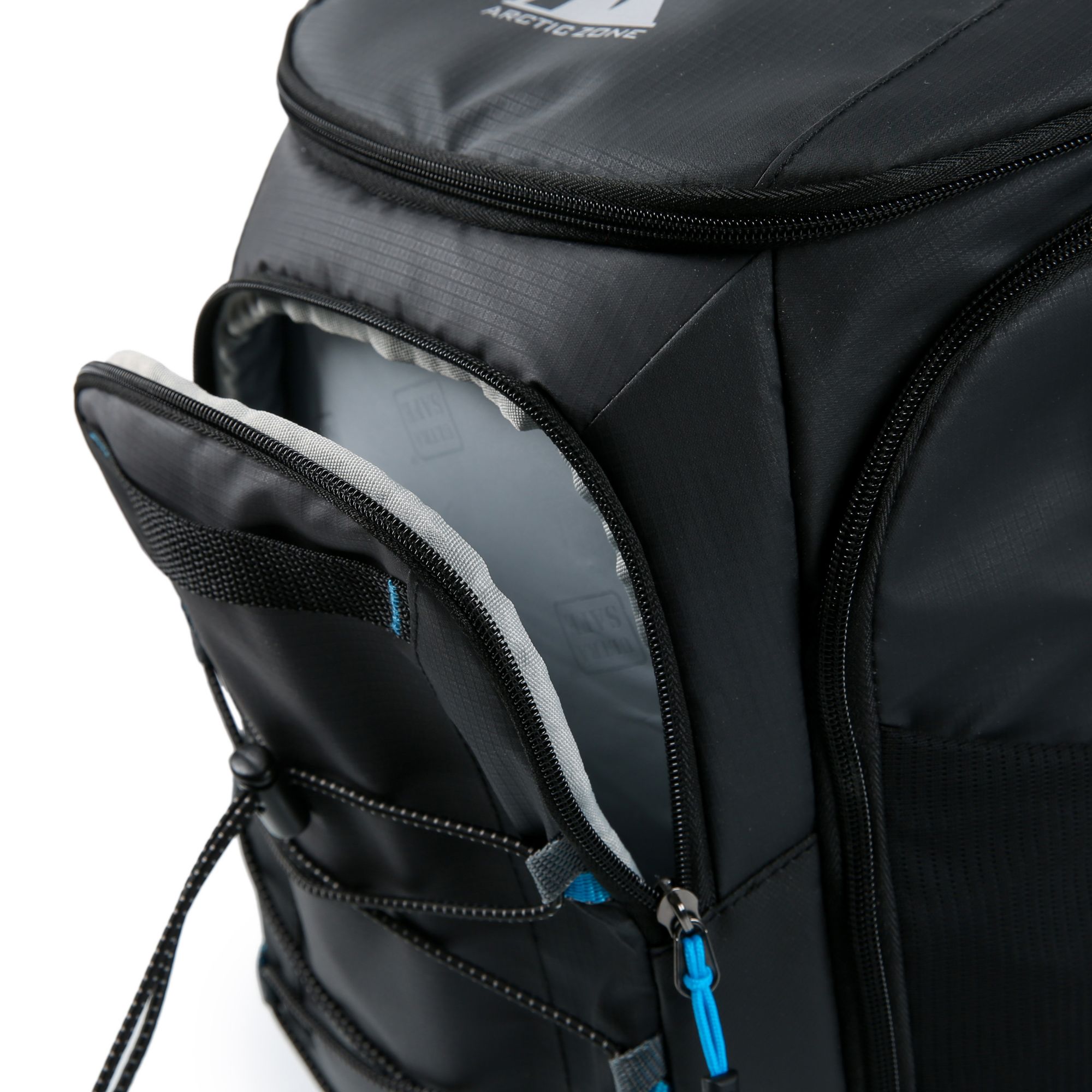 The Arctic Zone Backpack Cooler holds ice for up to two days and is perfect for weekend hikes, camping, or jaunts to the beach. The main compartment features SuperFoam high-performance insulation with Therma-Flect radiant barrier and an ultra-safe leakproof, easy clean lining. The wipe-clean exterior is water and stain repellent and includes multiple accessory pockets and elasticized gear straps. The padded back panel has vented air channels and adjustable, padded backpack straps for carrying comfort.