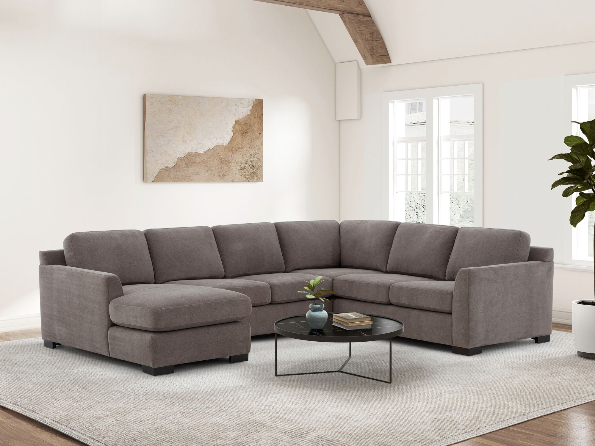 One right arm facing sofa, one corner, one areless sofa, one left arm facing chaise Durable textured 100% polyester upholstery Loose cushion KD legs, easy to assemble BJ's exclusive Includes 4-Pc. Sectional Sofa with Chaise