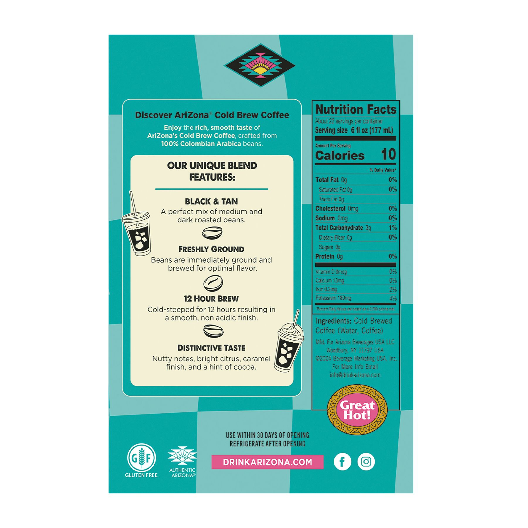 Made from cold-steeped Colombian Arabica beans, our Cold Brew Coffee on tap delivers smooth flavor straight to your fridge. Enjoy the full-bodied richness of Arizona’s debut unsweetened black coffee with nutty notes, hints of citrus, and a sweet cocoa finish. No sugar, no gluten, no dairy, non GMO, no preservatives, and no artificial sweeteners.