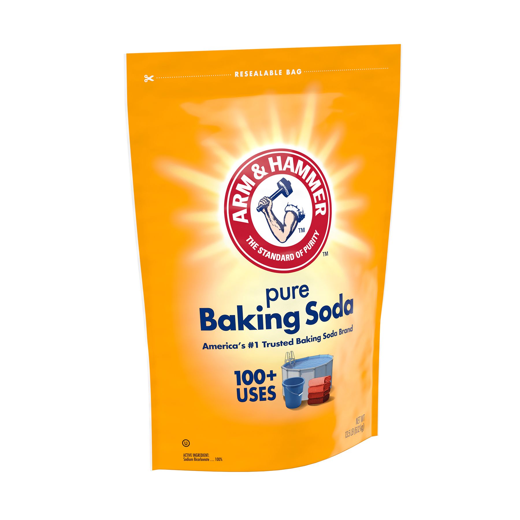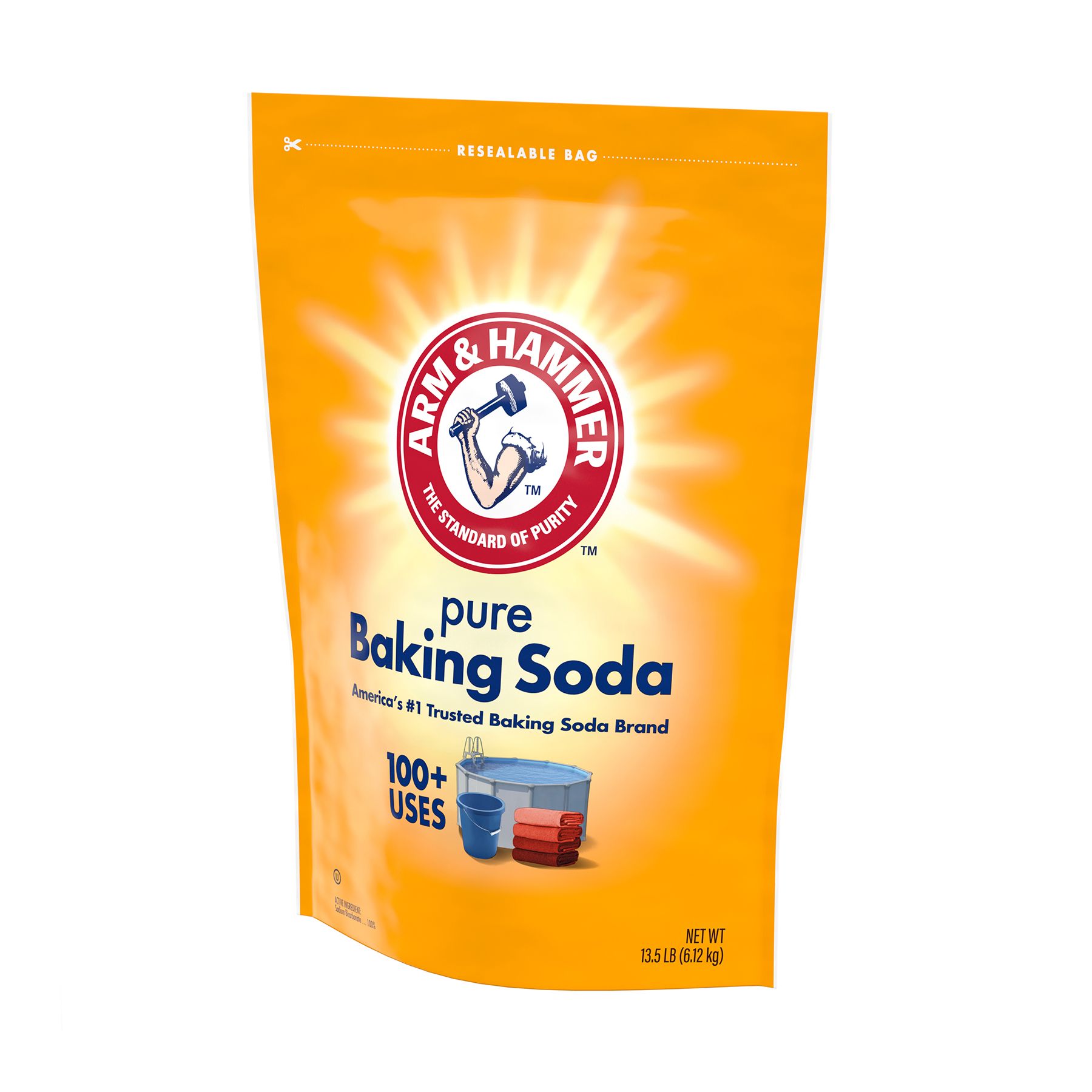 Arm & Hammer Baking Soda is pure and natural. It's great for household cleaning as well as swimming pools. Each container comes in a large 13.5 lbs. value size.