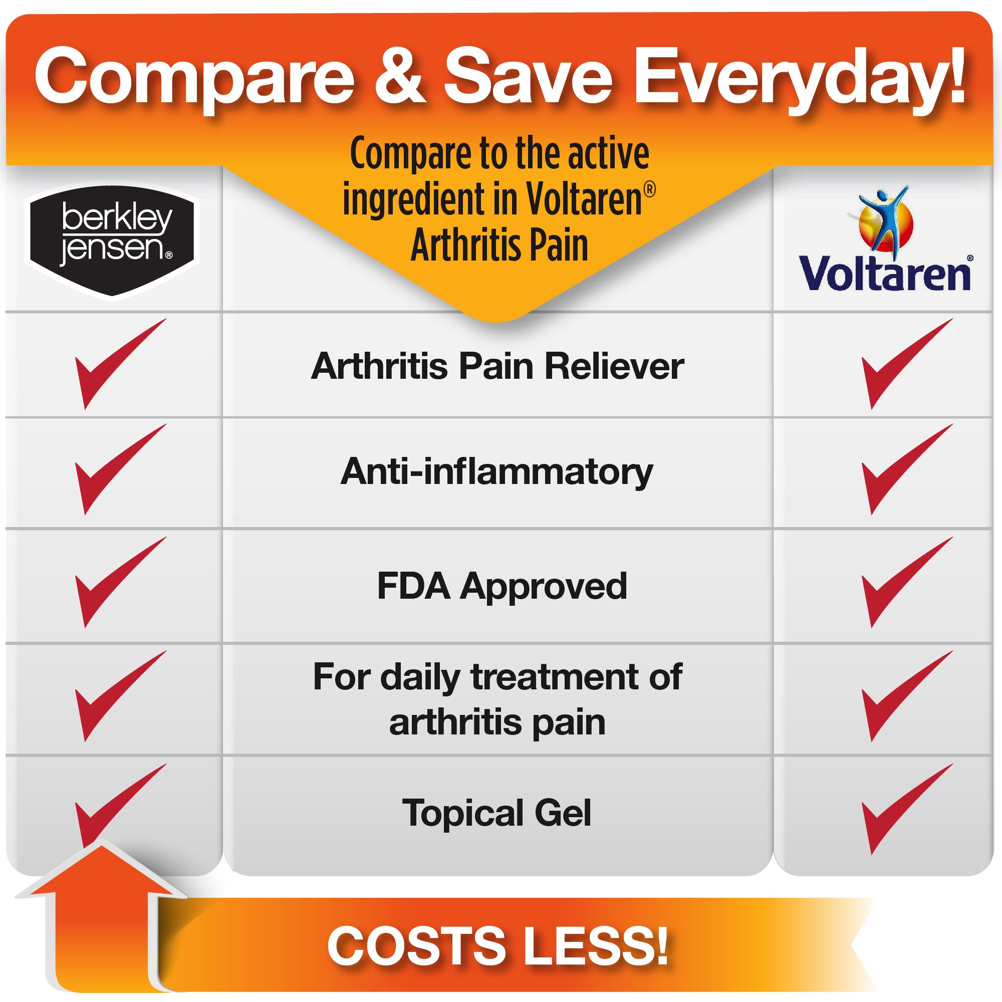 Compare to the active ingredient in Voltaren arthritis pain. Life doesn't stop for pain. When arthritis pain keeps you from getting a move on, you need a pain reliever that does more than just numb or desensitizes the pain. Arthritis pain relieving gel is a non-steroidal anti-inflammatory drug (NSAID) that reduces pain and inflammation to keep you going strong. Clinically proven to relieve arthritis pain, this medicated gel can be used daily so you can get back to doing what you love without arthritis pain holding you back.