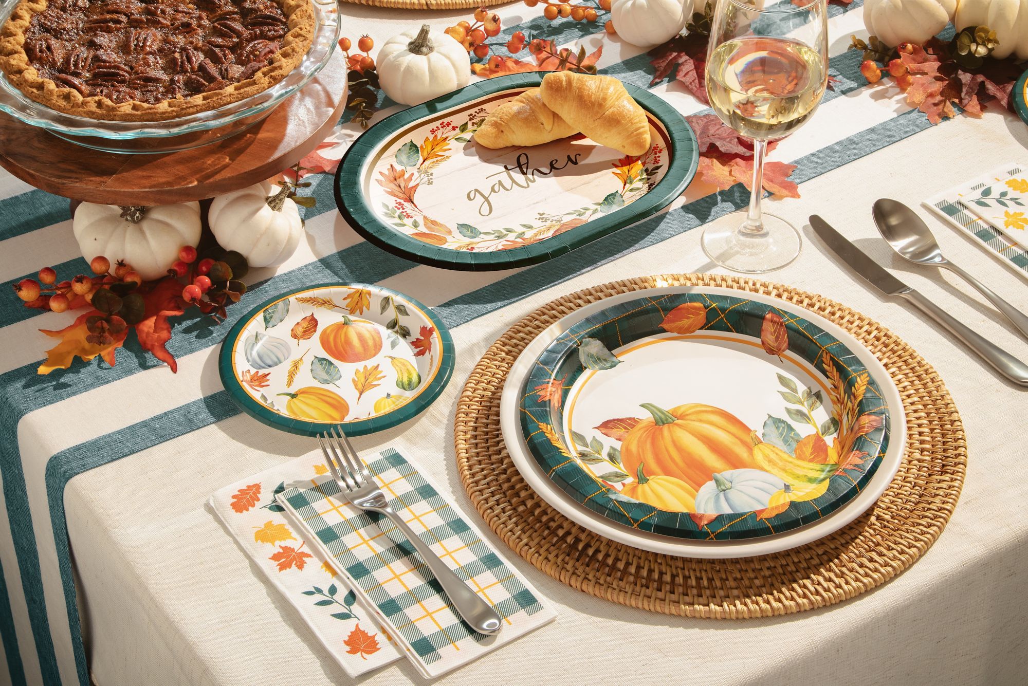 Strong and durable plates for any occasion, party, meal, or gathering Bring a Fall feel to your table with this exclusive 'Autumns Gift' design Choose from 7" dessert plates, 10" paper plates or premium dinner napkin (all sold individually) Product of the USA Cut resistant Soak proof Includes 7" Dessert Paper Plates, 100 ct.