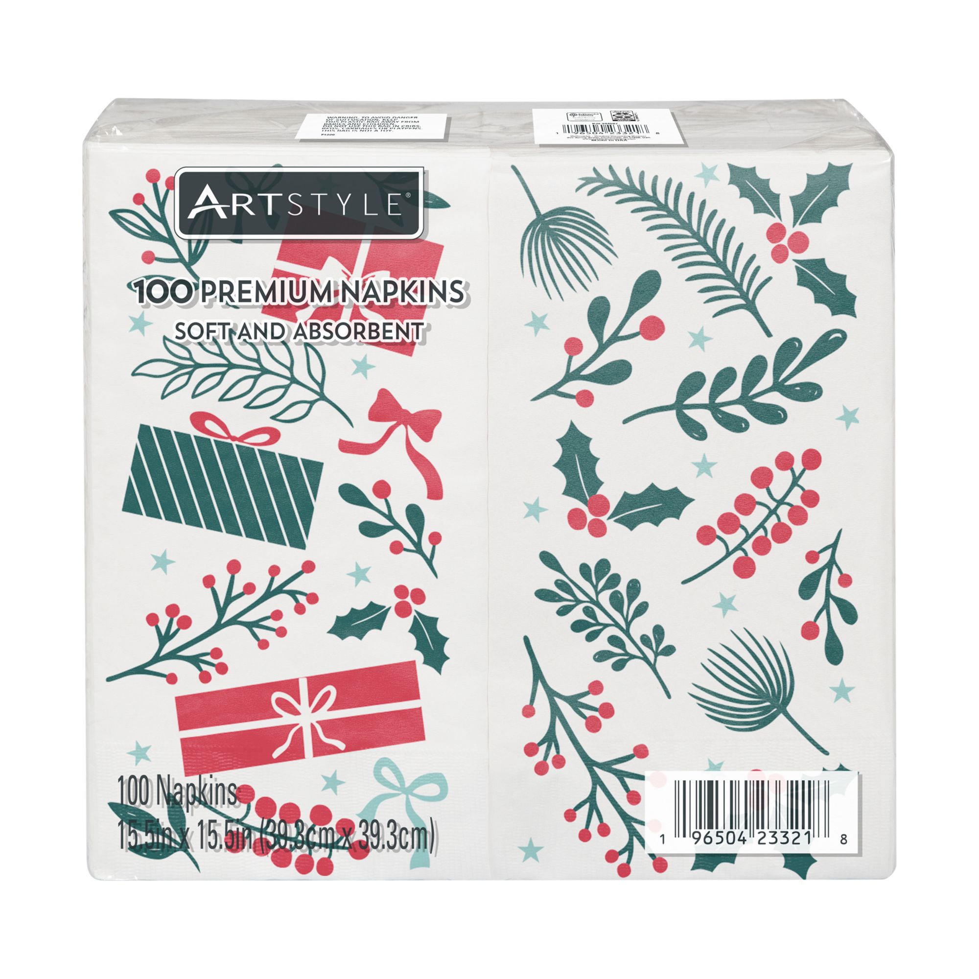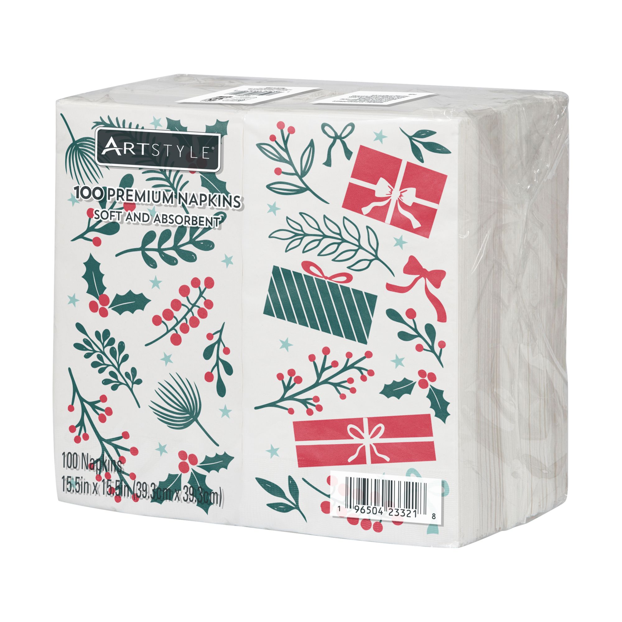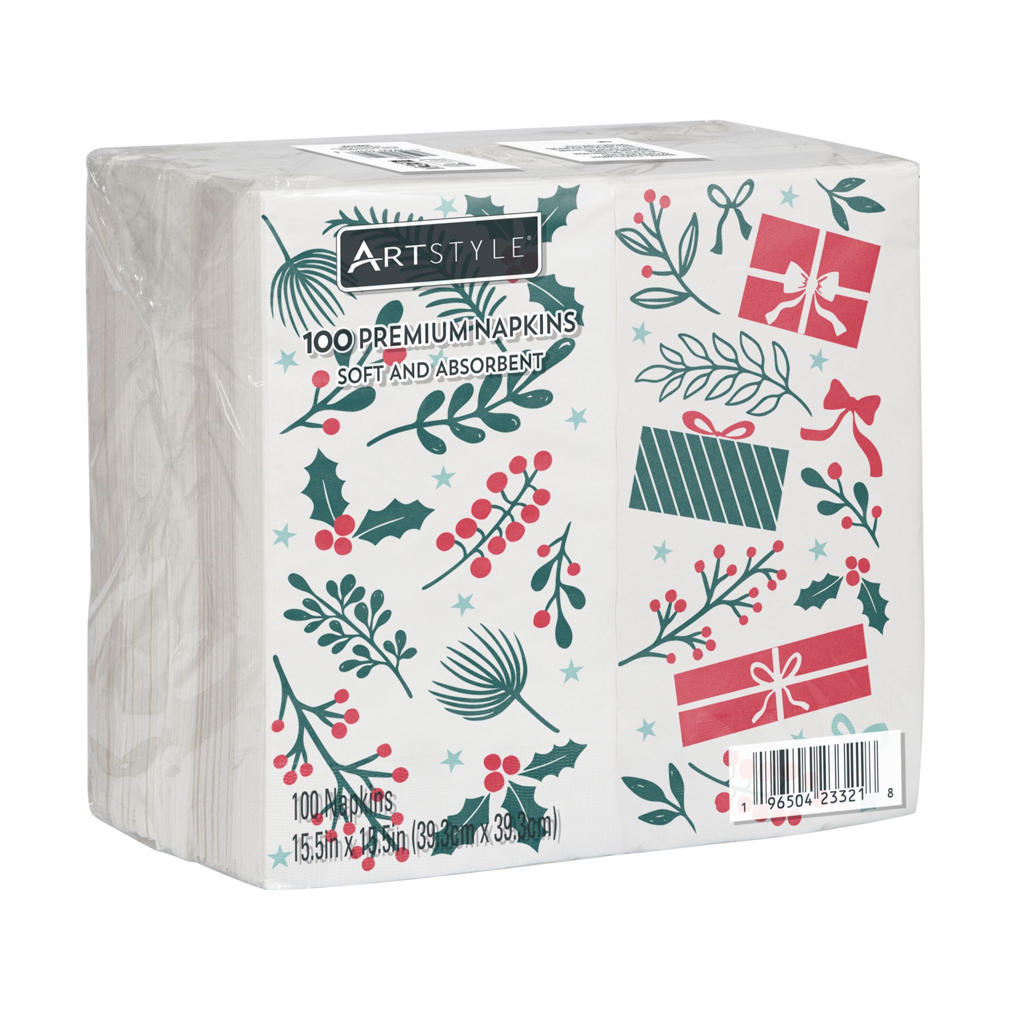 Enjoy the elegance of linen, plus the convenience of disposable, with help from our Premium Holiday Dinner Napkins. This napkin is made by combining both air and embossing to make a thick, fluffy napkin. It features a soft hand feel, is absorbent, and will last an entire meal. The beautiful design is perfect for any Holiday gathering and can be paired with a 7" dessert plate or a 10" paper plate.