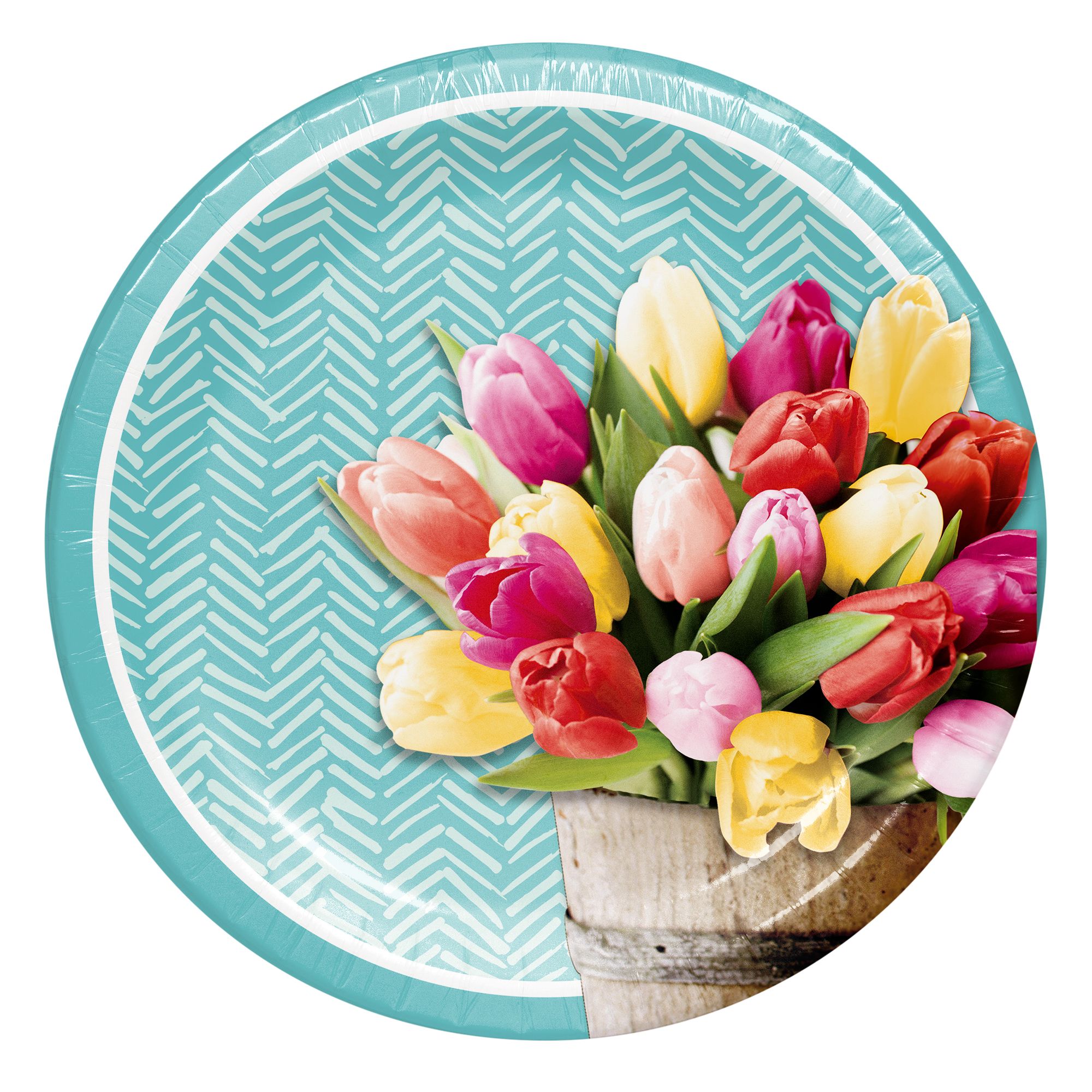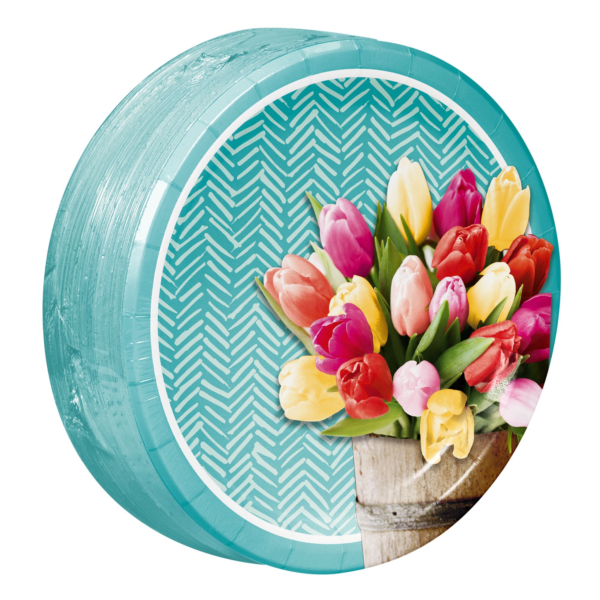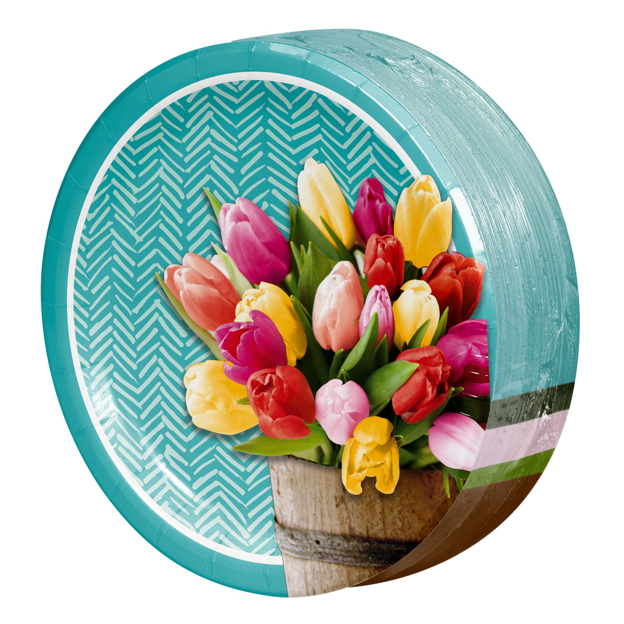 BJ's excusive 'Pretty Little Tulips' paper plates and napkins provide everything you need to set the table for your spring gatherings. Set your next table with BJ's exclusive "Pretty Little Tulips" design paper plates and paper napkins. These spring themed dessert plates display a beautiful photo real floral arrangement, complimented by a simple modern background. Artstyle high quality PERFORMA paper plates are strong enough to handle extra helpings, are cut resistant and water resistant to prevent leak-through. Pair these 6.875" round paper plates with coordinating oval plates, dinner plates and napkins for a complete table setting. Disposable for easy clean up and microwave safe. Only available at BJ's.