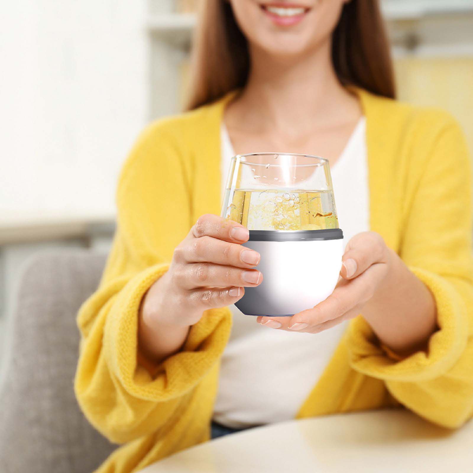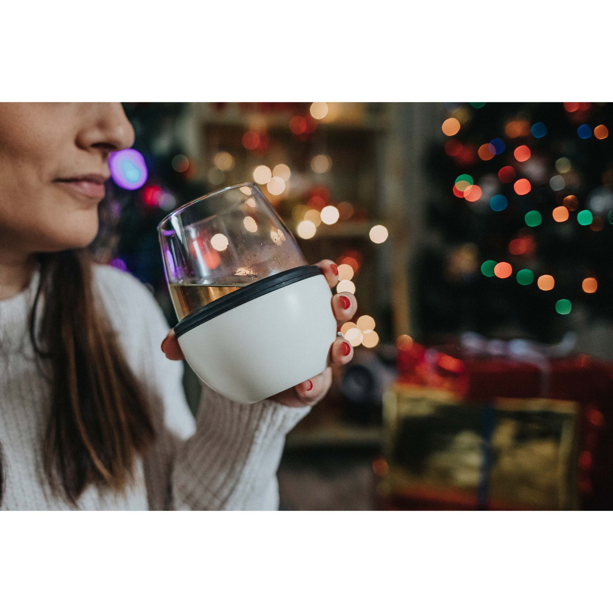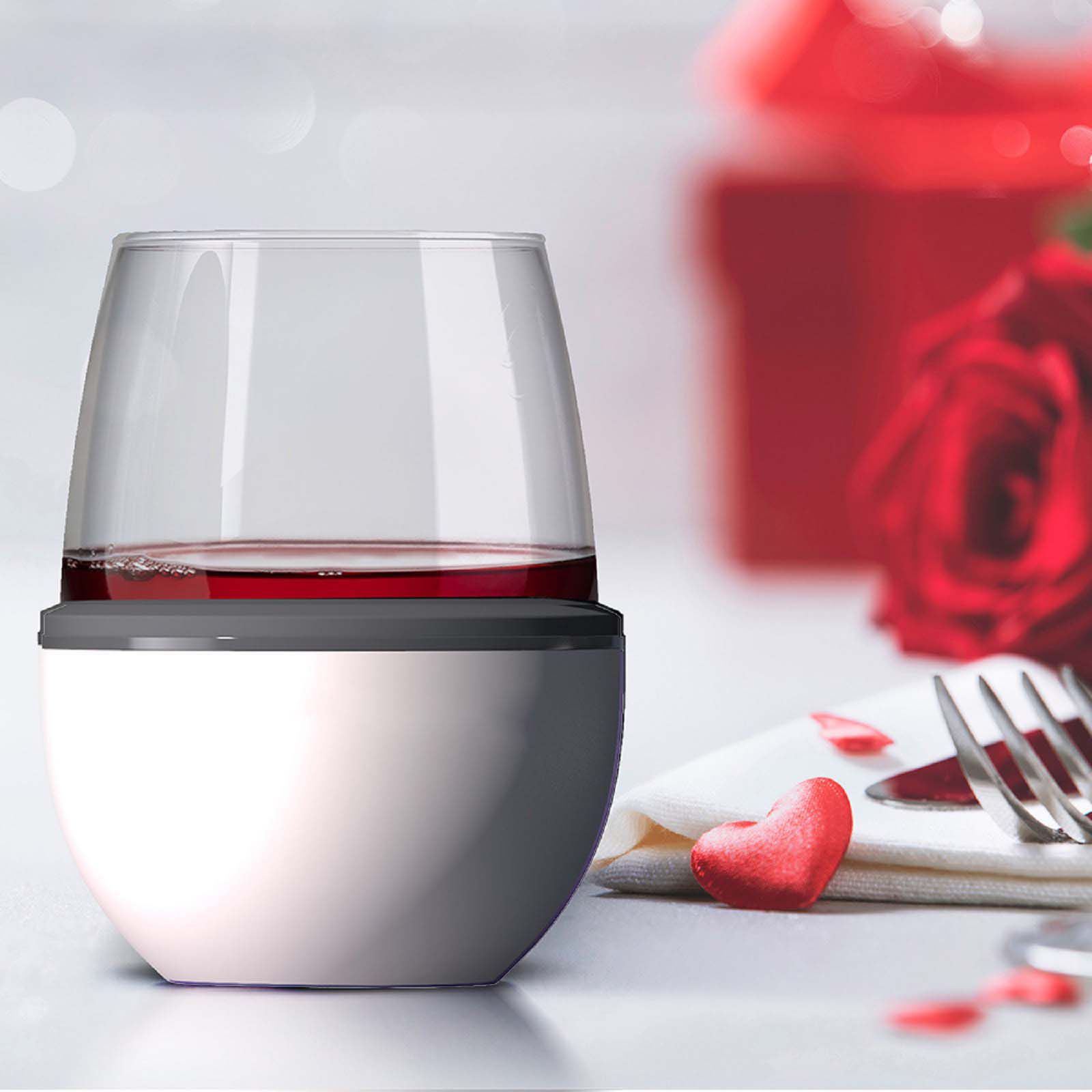 Wine glasses are glass, not metal simply because wine tastes best out of a glass. What happens when we want to drink chilled wine at a BBQ, or a pool party? Using metal, stemless cups gives the wine a metallic taste. The Asobu's 2 pk. wine glass and sleeve are lightweight, double-walled insulated, and it secures your stemless wine glass (glass is included in the package). It is created with a novel, innovative patent-pending technology that will keep your wine chilled with no sweat on the outer wall.