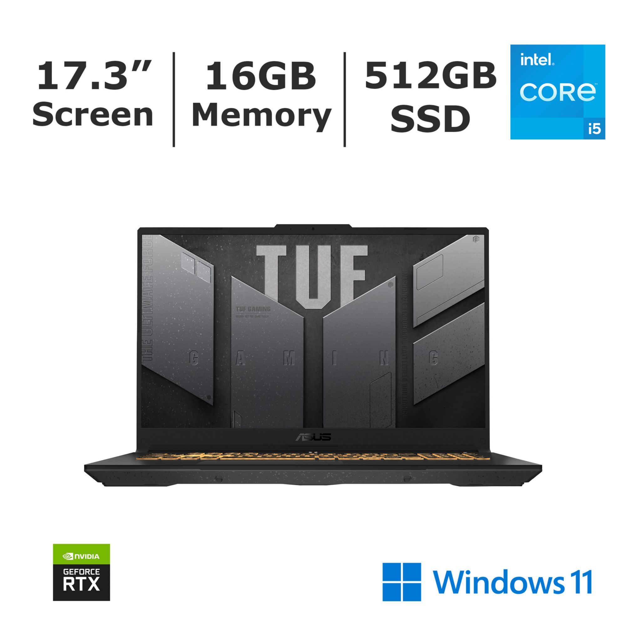 ASUS TUF 17.3" FHD Gaming Laptop, Intel Core i5 Processor, 16GB RAM, 512GB SSD, NVIDIA RTX 3050 Graphics