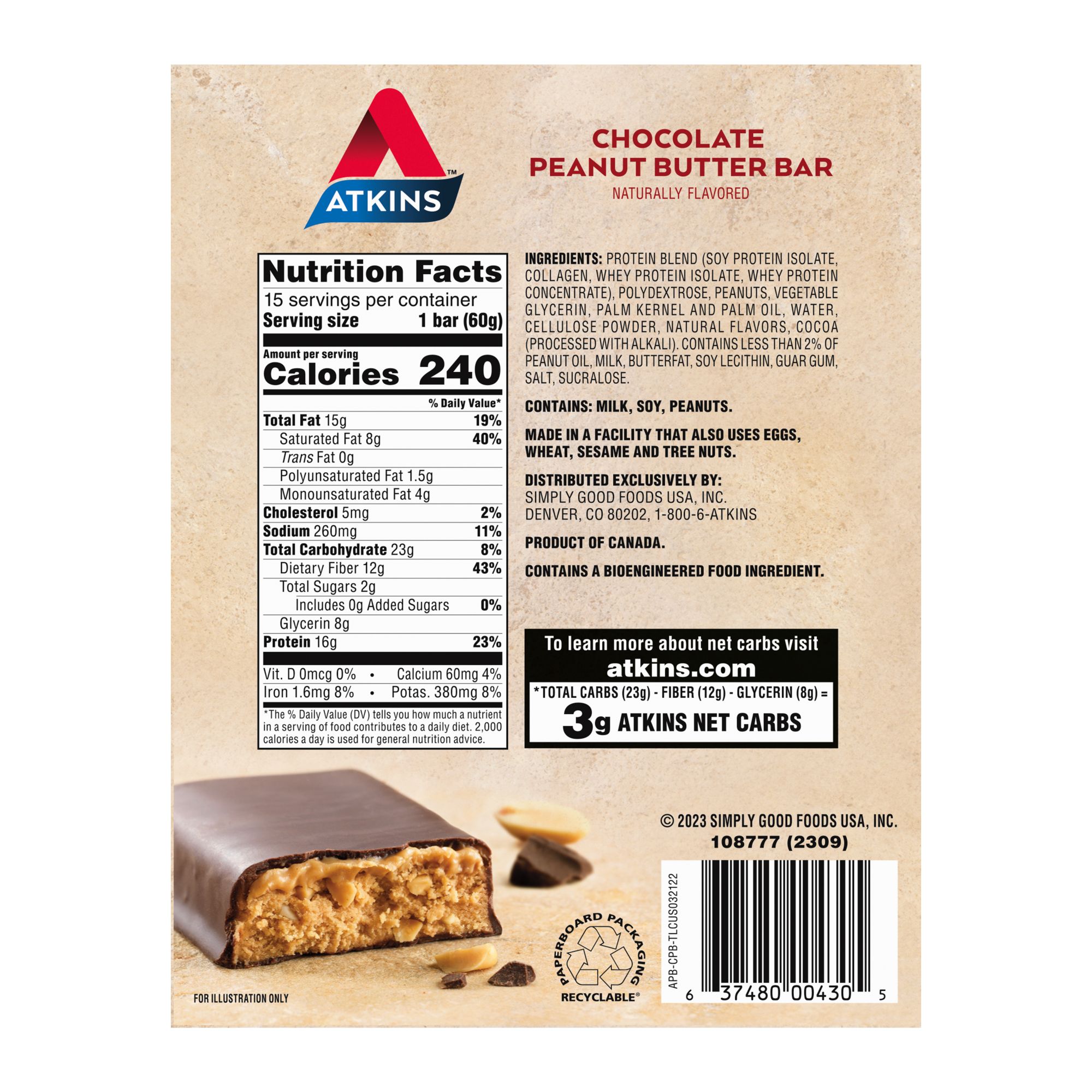 Atkins Meal Bar Chocolate Peanut Butter, 16g Protein, 15 ct.