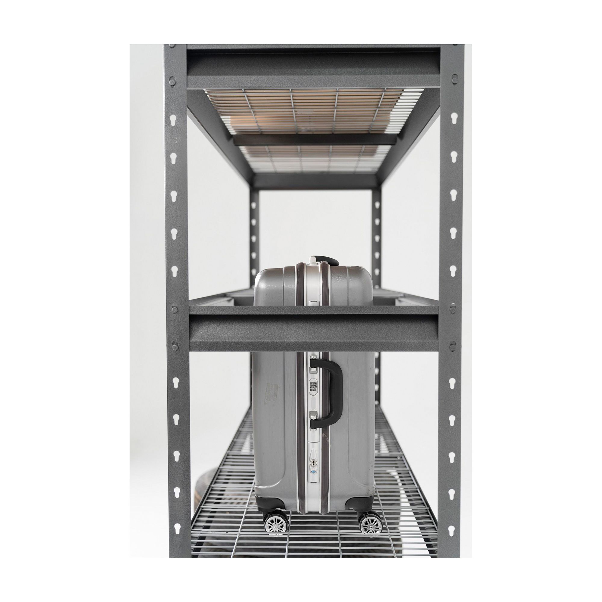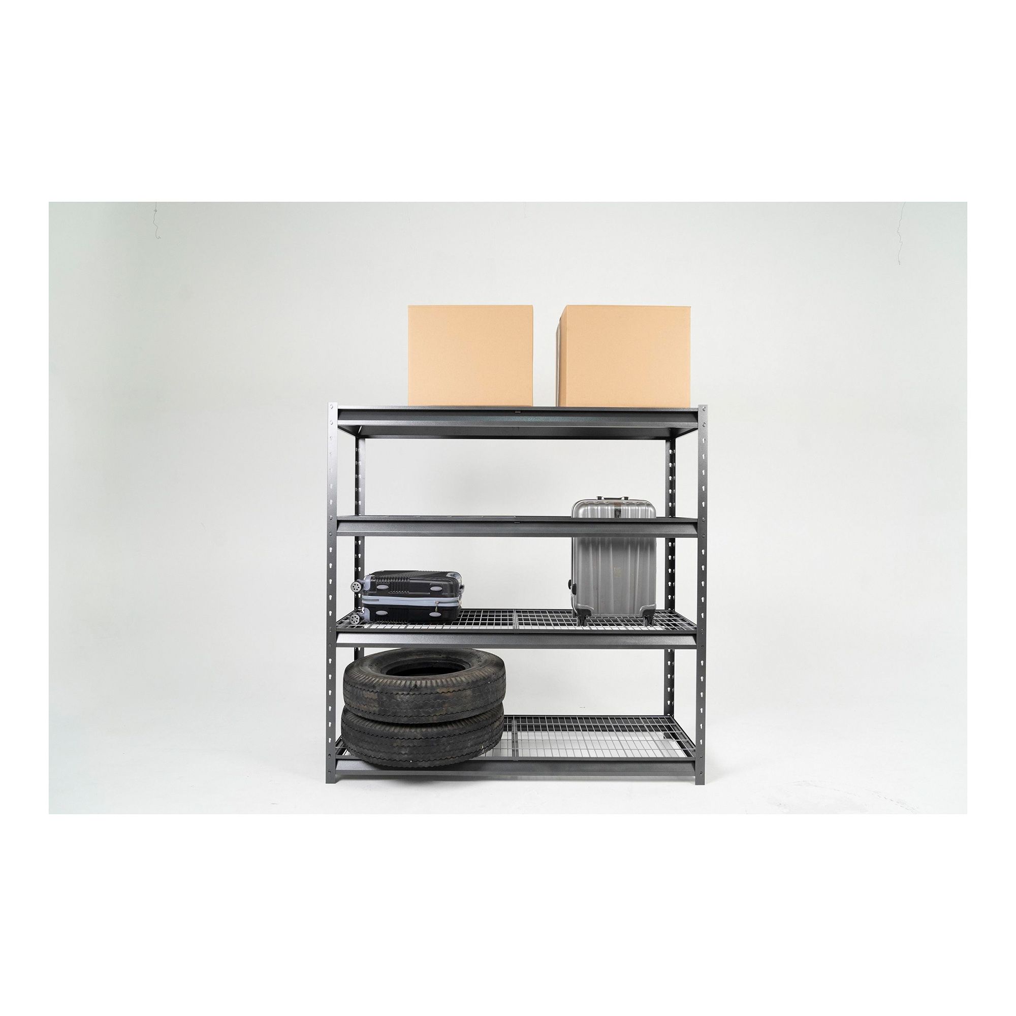 This high-capacity storage shelf can hold 2,500 lbs. per shelf, or up to 10,000 lbs. per unit. The storage can be accessible from all four sides which makes it a super convenient option. This unit features a split-deck design allowing for the storage of taller items its snap-lock assembly makes it easy to set up.