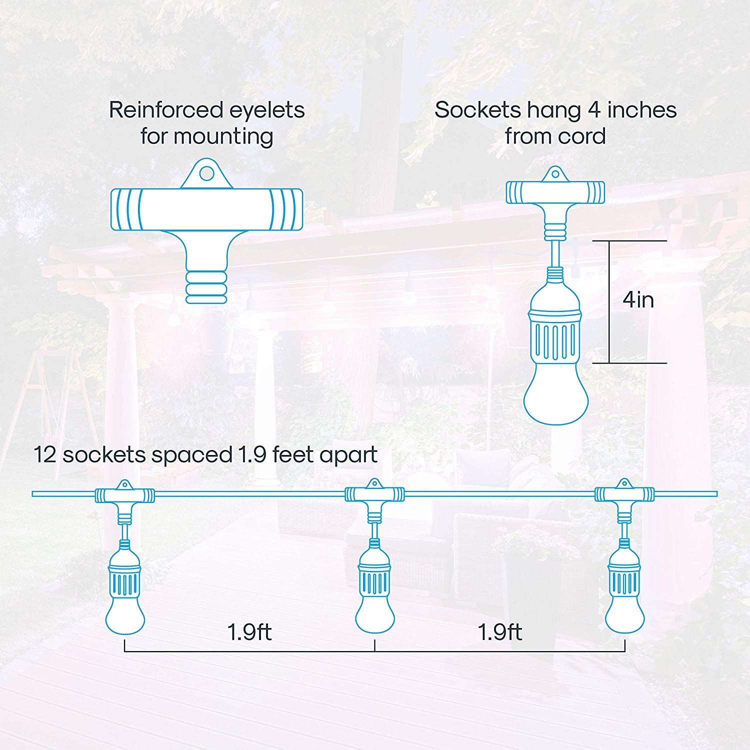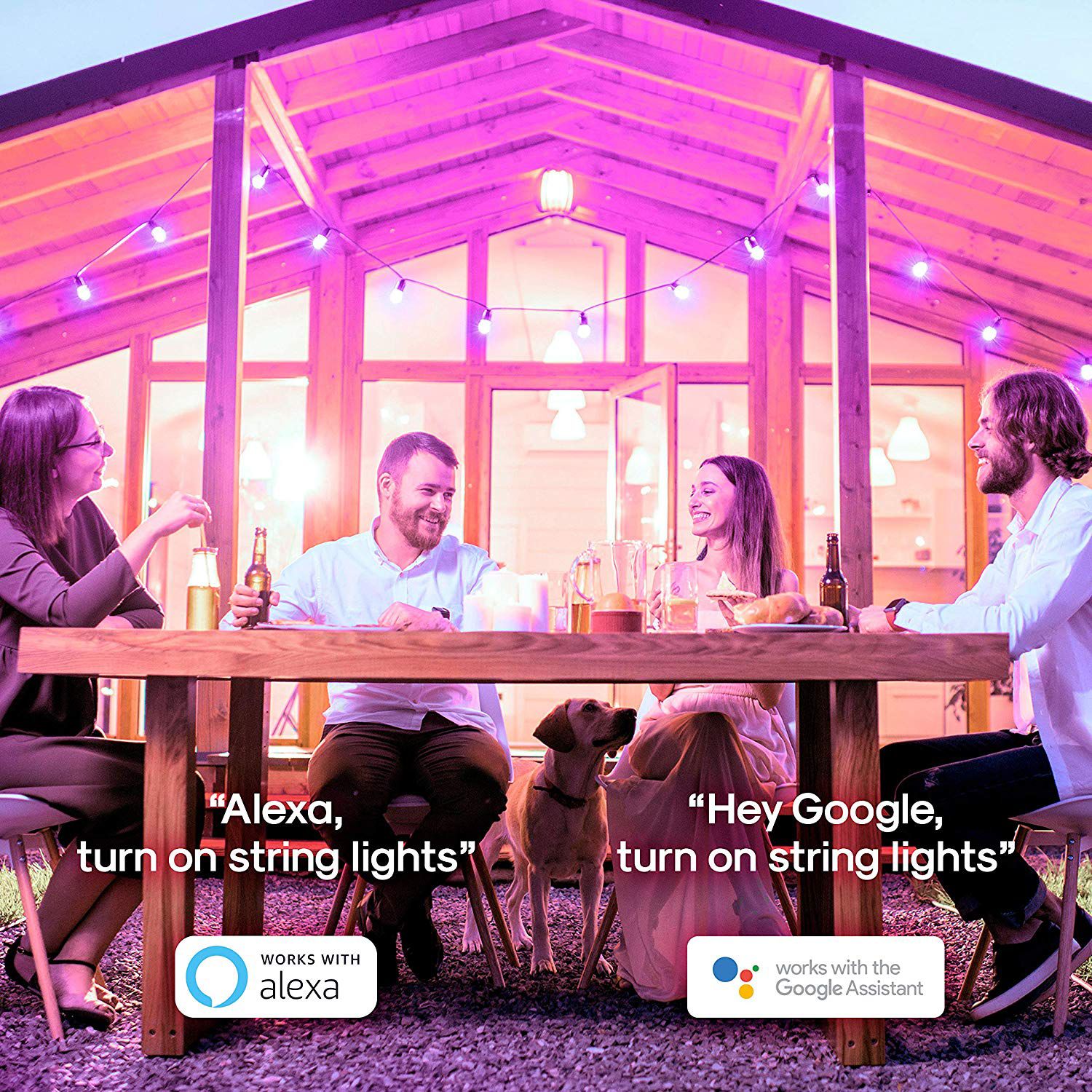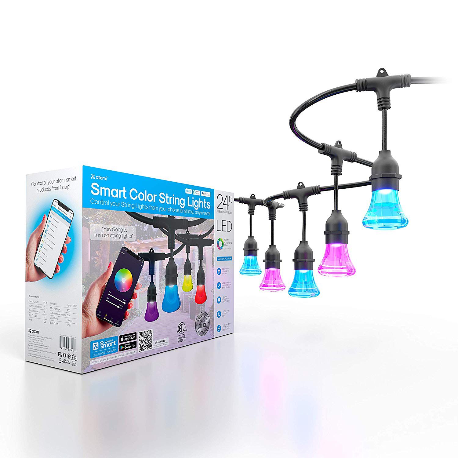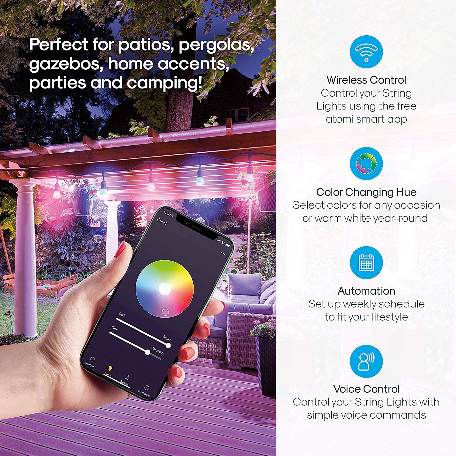 Wirelessly control and schedule your café lights from anywhere with your mobile device with these 24' Color Smart String Lights by Atomi. These string lights' mobile app allows for on/off control, presets, countdowns and the ability to create custom schedules or grouped lights. Choose from warm white for year-round use or select colors for holidays and any special occasion. It can also be controlled with voice commands through Amazon Alexa or Google Assistant.
