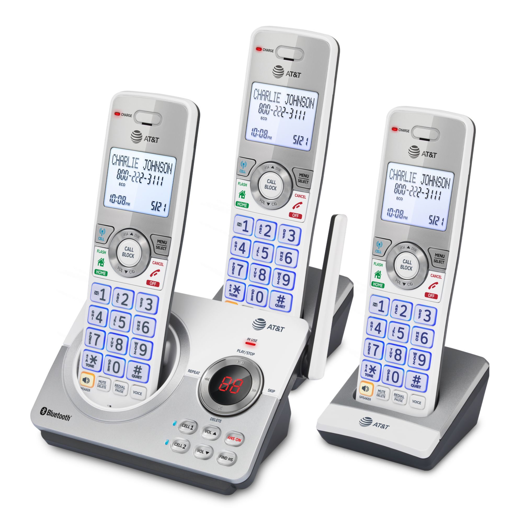 AT&T 3-Handset Cordless Phone with Unsurpassed Range, Bluetooth Connect to Cell, Smart Call Blocker and Answering System