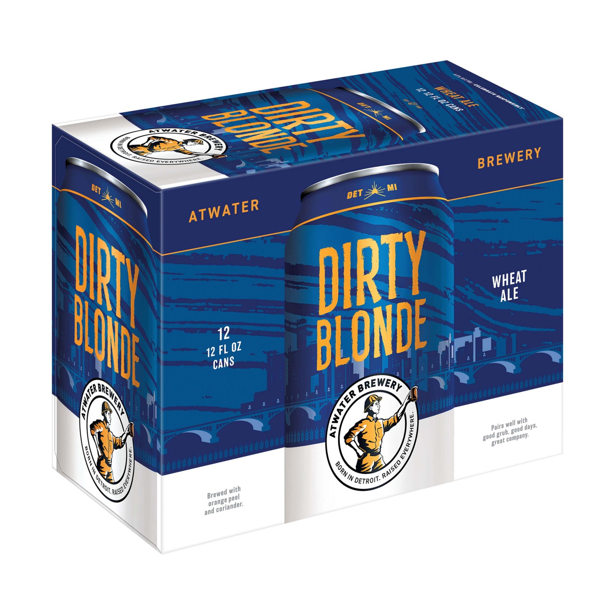 Atwater Dirty Blonde Wheat Ale is a lightly sweet blonde beer with a beautiful cloudy golden hue. Each sip will leave you wanting another as you savor the crisp, refreshing wheat ale brewed with orange peel and coriander, with 4.5% ABV. From mild to wild, this craft beer is the perfect companion for whatever you're up for. Grab a 12 pack of 12-oz beer cans for your next backyard cookout, beach day or watch party for your favorite team. You can serve this light-bodied beer alongside seafood, poultry or other dishes with strong flavors. Enjoy this blonde ale beer for an easy, refreshing slice of carefree fun. Founded in 1997, Atwater Brewery made its debut in Detroit, Michigan in the historic Rivertown district with a focus on bringing back the Bohemian style lager. Atwater currently holds true to making traditional German-style lagers, along with unique boutique ales.