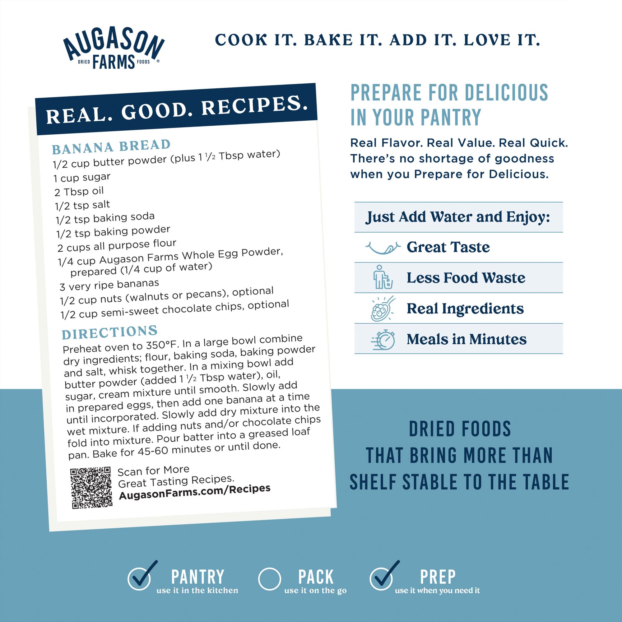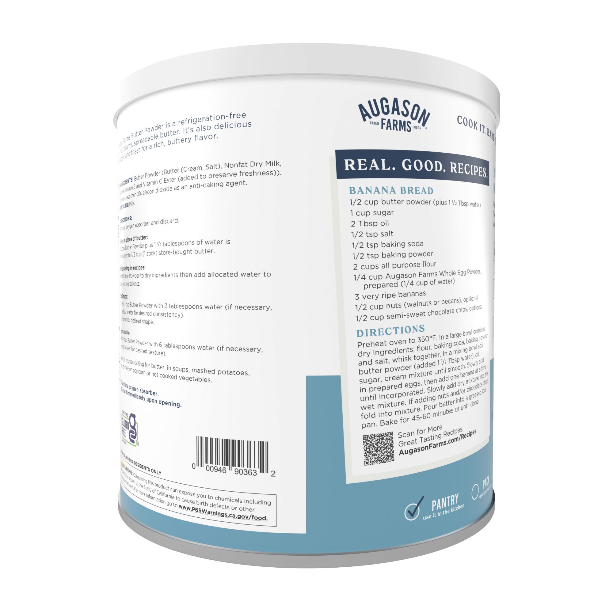 Augason Farms Butter Powder is made from real butter. It adds mouthwatering flavor to popcorn and soups, and can even be used to make honey butter. The ease of substituting it in any recipe makes it an ideal addition to any emergency food kit.