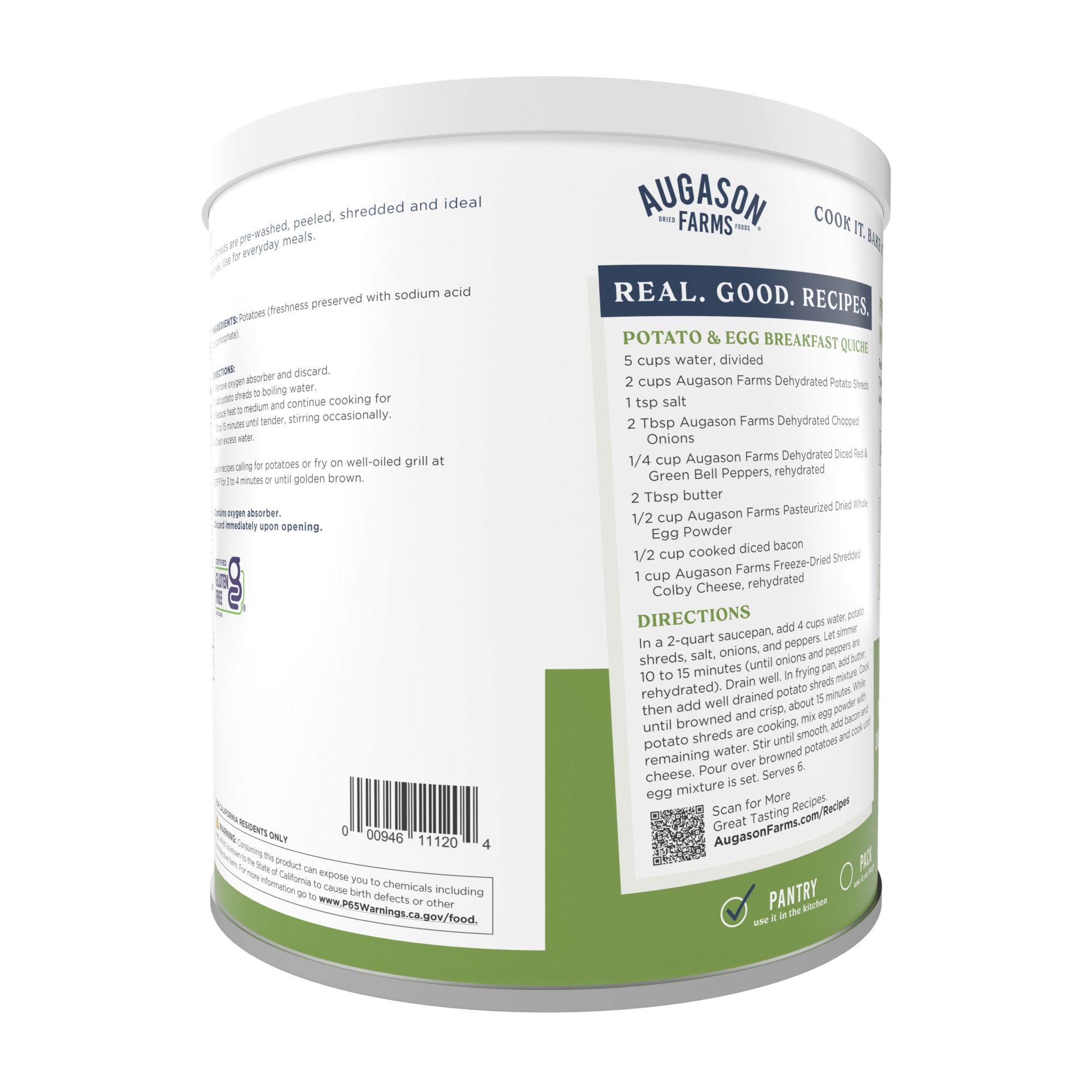 Augason Farms Dehydrated Potato Shreds can be used in hash browns, soups, casseroles, and salads or paired with dehydrated vegetables and freeze dried meats. Excellent for use now or as part of your emergency food storage.
