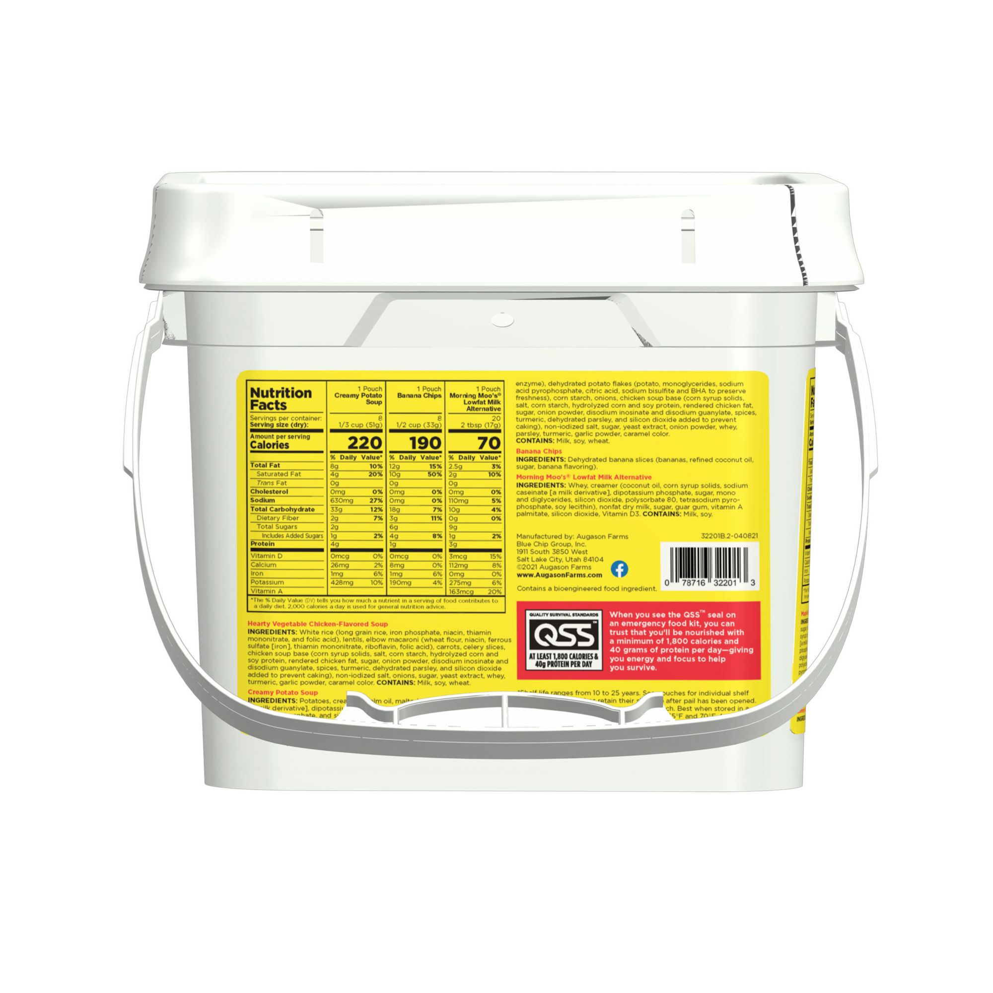 The Augason Farms 1-Week 1-Person Emergency Food Supply provides 78 total servings and an impressive 1,783 calories per day. 8 easy-to-prepare meal varieties, including breakfast, lunch, dinner, milk and a fruit snack, are packaged in a convenient grab-and-go pail. Not only will you thrive on the nutritious meals, you will enjoy the variety and great taste. Meals are easy to prepare by simply adding water and simmering for a few short minutes. All this coupled with a 25-year shelf life, and you have an emergency food solution freeing you from the worry of an unexpected emergency for years to come.