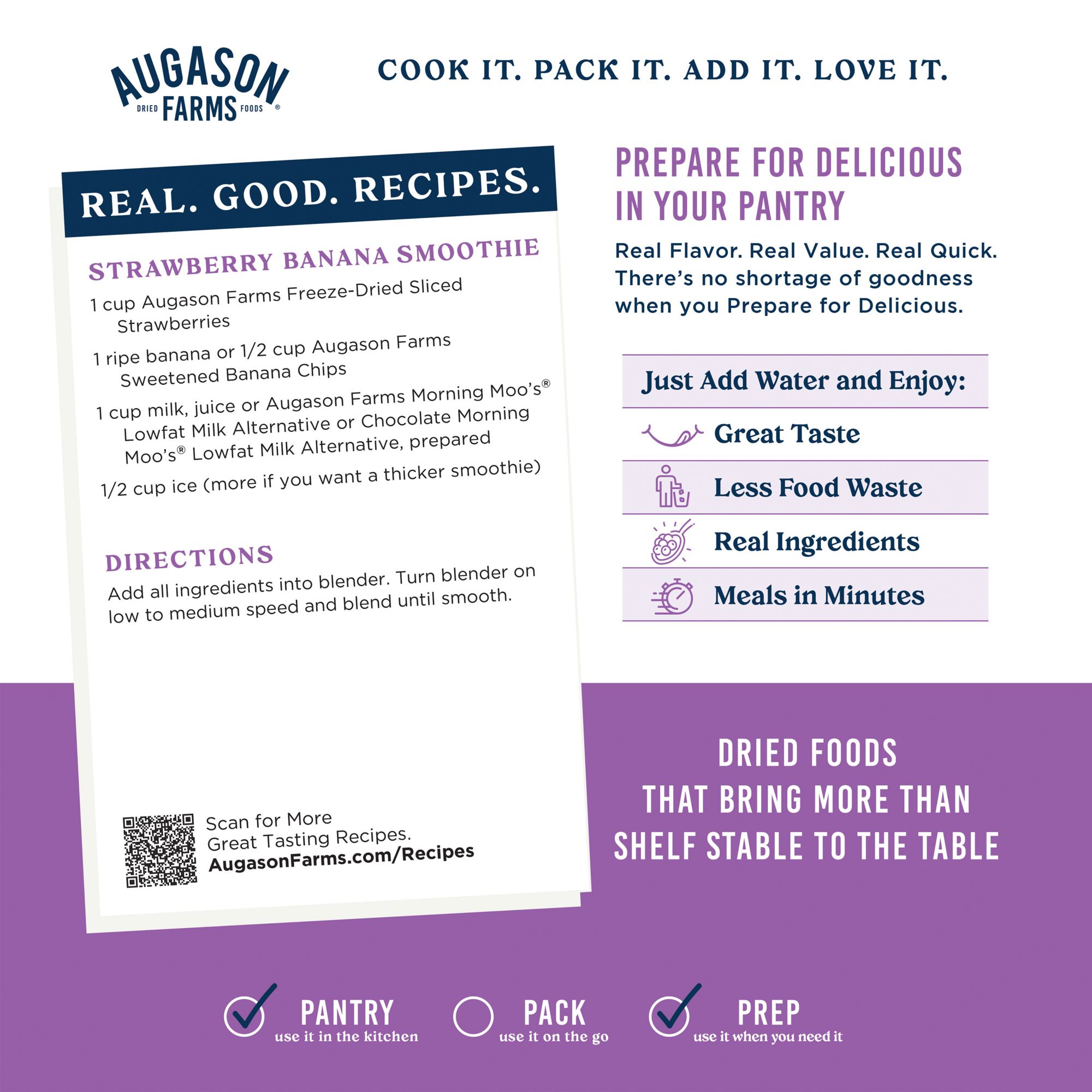 So many ways to enjoy: Add natural sweetness to cereal, yogurt, baked goods, or smoothies. A versatile addition to your kitchen and a must-have in your freeze-dried food supply.