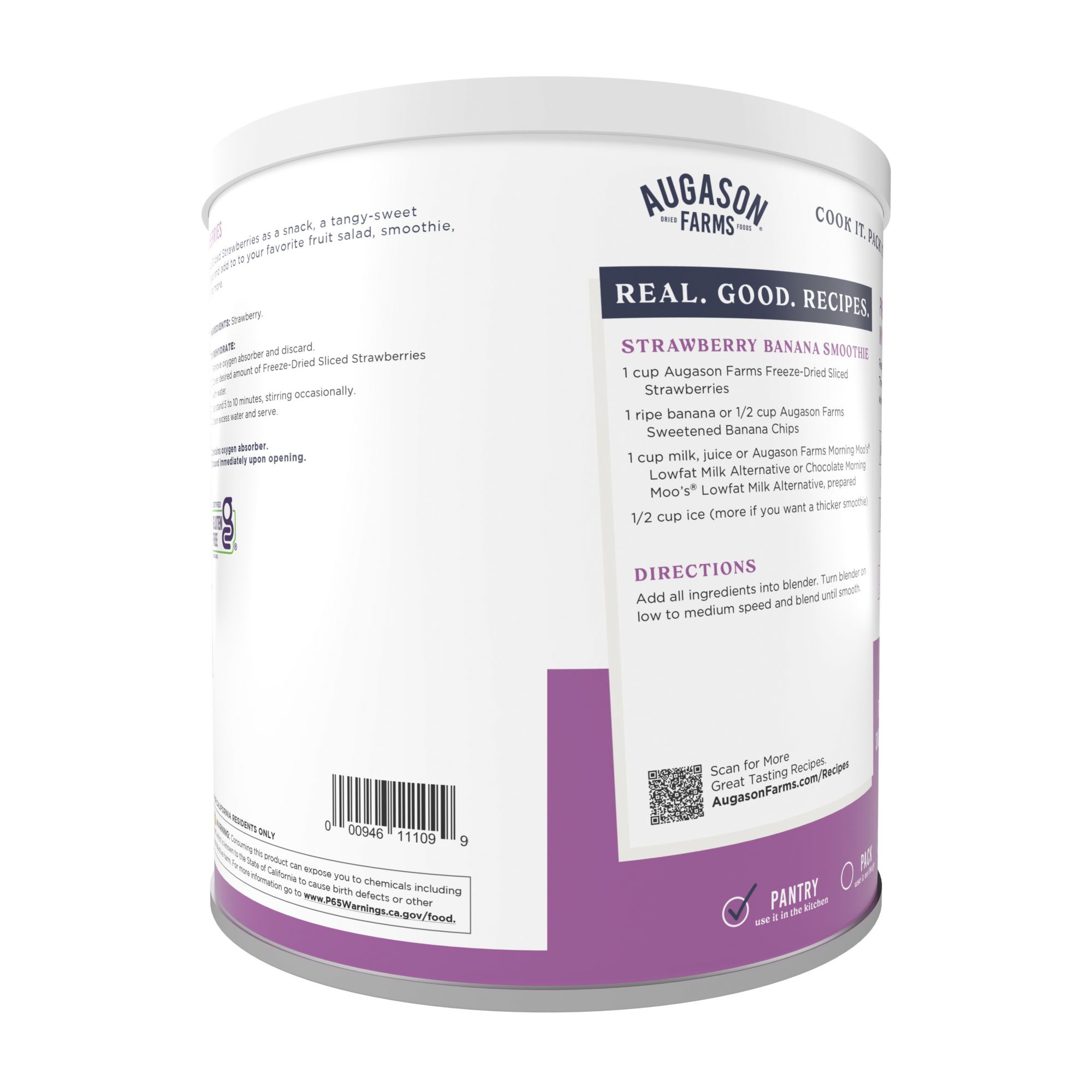 Freeze-Dried Sliced Strawberries can be enjoyed as a snack right out of the can or reconstituted with water to use in desserts like strawberry shortcakes, milkshakes, and tortes. Low in fat, low in sodium.