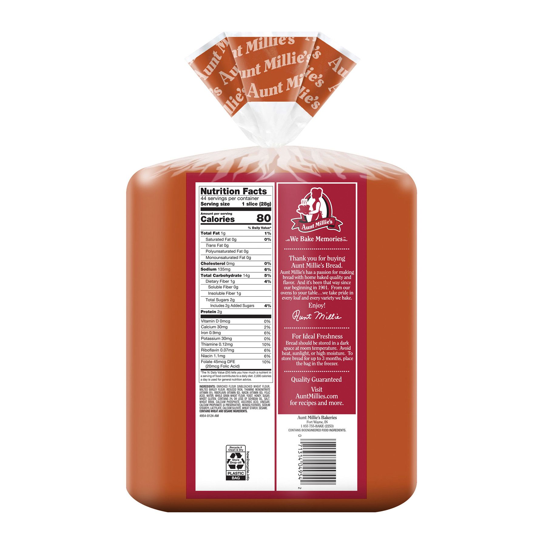 Aunt Millie’s Honey Wheat Bread is the perfect balance of yin and yang - made with whole-grain wheat flour and a touch of honey for a slightly sweeter flavor. It’s ideal for school lunches, especially in families switching from white bread; simply stack or smear with their favorites for meals kids will love. And of course Honey Wheat Bread is a favorite for French toast! Baked by Aunt Millie’s, a family-owned business since 1901.
