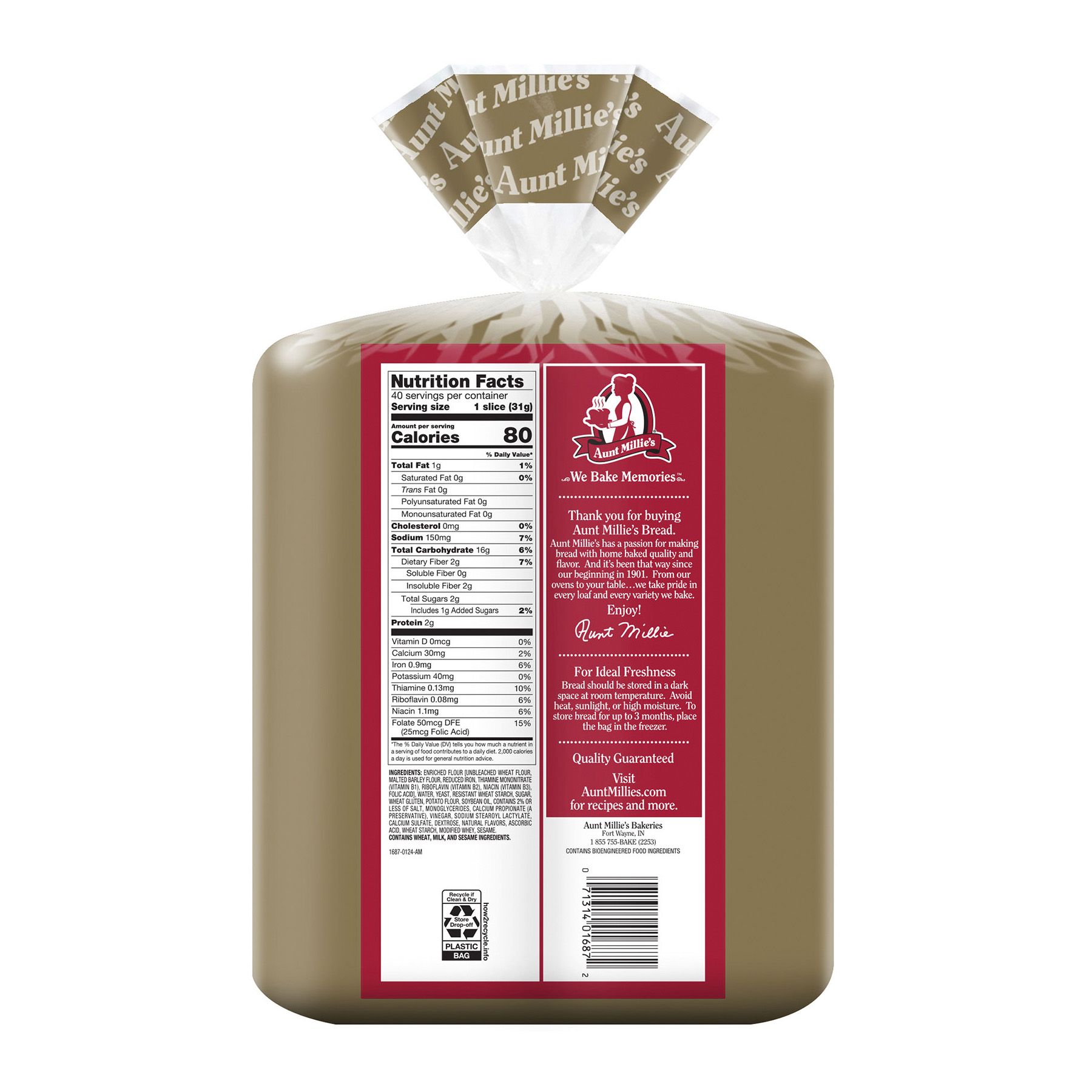 Aunt Millie's Potato Bread is soft, rich and full of buttery potato flavor! A good source of fiber, this bread is great for breakfast toast and sandwiches. Made by Aunt Millie's Bakeries, a family-owned company since 1901.