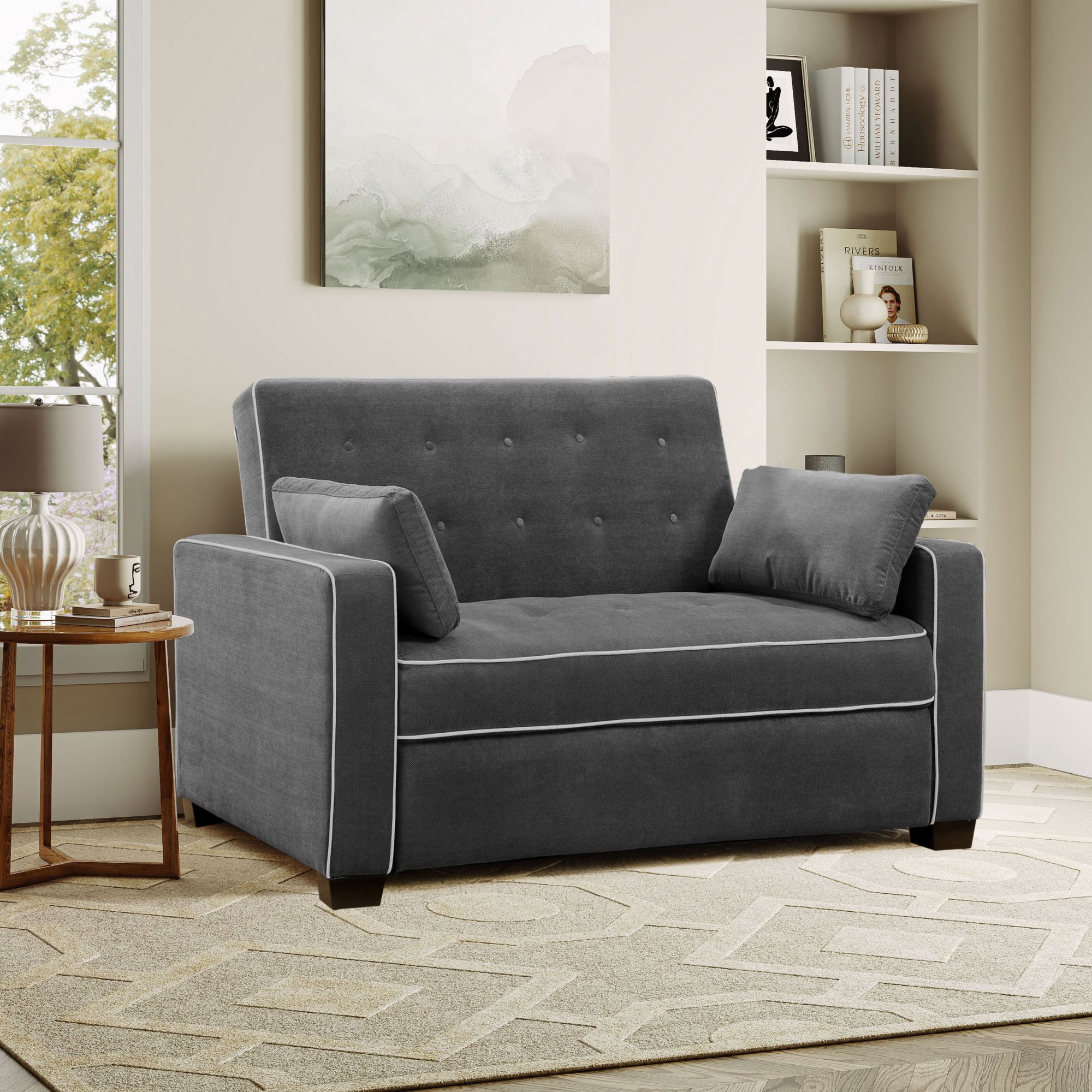 Three seat functions: sofa, lounger and bed Pull out sleeper is approximately queen size bed Two matching pillows included Fully upholstered side panels Assembly required Overall dimensions: 37.6"D x 72.6"W x 39.6"H Seat dimensions: 23.4"D x 60"W x 19.7"H Arm dimensions: 37.4"D x 6.3"W x 24.8"H Overall weight: 183.7 lbs. Weight capacity: 600 lbs. Includes one convertible sofa