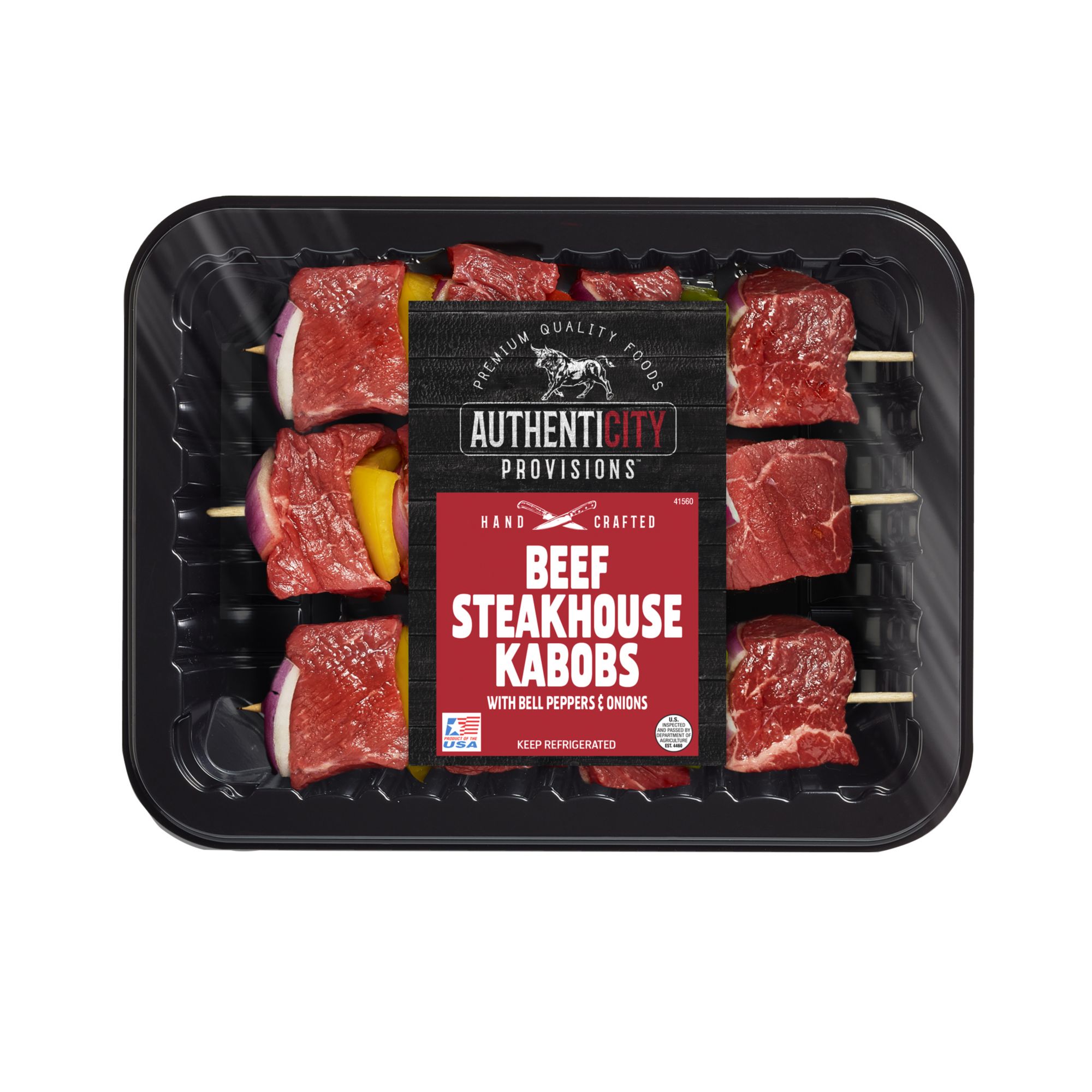 Authenticity Provisions Beef Steakhouse Kabobs are the perfect addition to your summertime grilling menu. Preskewered with cubed, steakhouse marinated beef alternating with fresh bell peppers and onions; this takes the work out of meal prepping so you can spend less time at the grill and more time at the table.