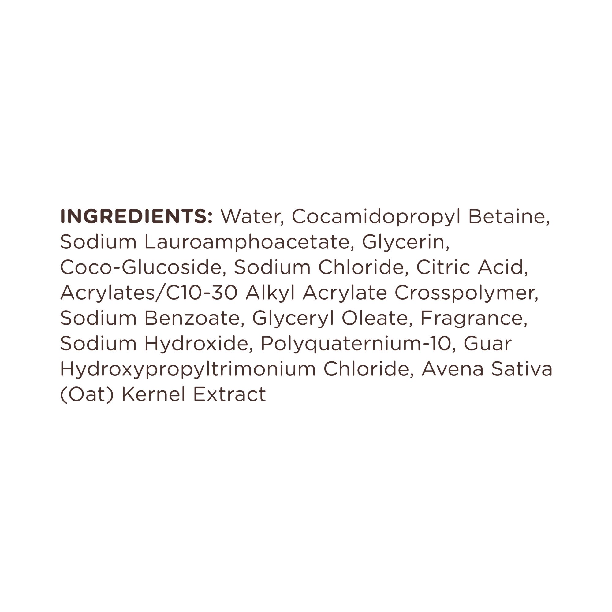 Ingredients: Water, Cocamidopropyl Betaine, Sodium Lauroamphoacetate, Glycerin, Coco-Glucoside, Sodium Chloride, Citric Acid, Acrylates/C10-30 Alkyl Acrylate Crosspolymer, Sodium Benzoate, Glyceryl Oleate, Fragrance, Sodium Hydroxide, Polyquaternium-10