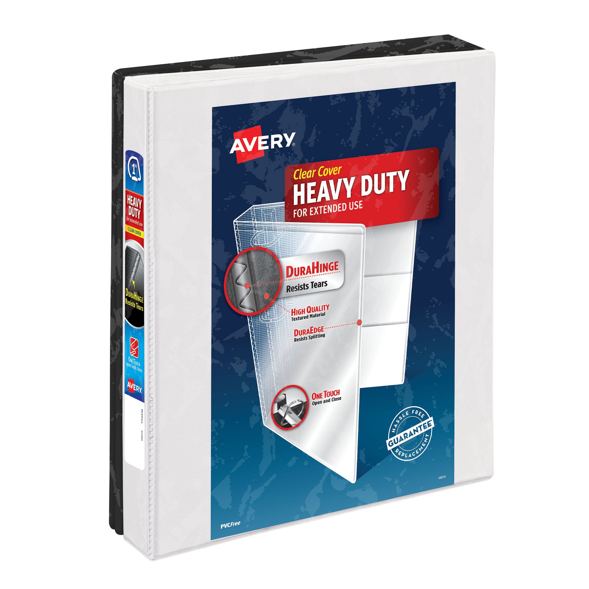 Includes two-pack of Avery one-inch heavy duty view binders of assorted colors