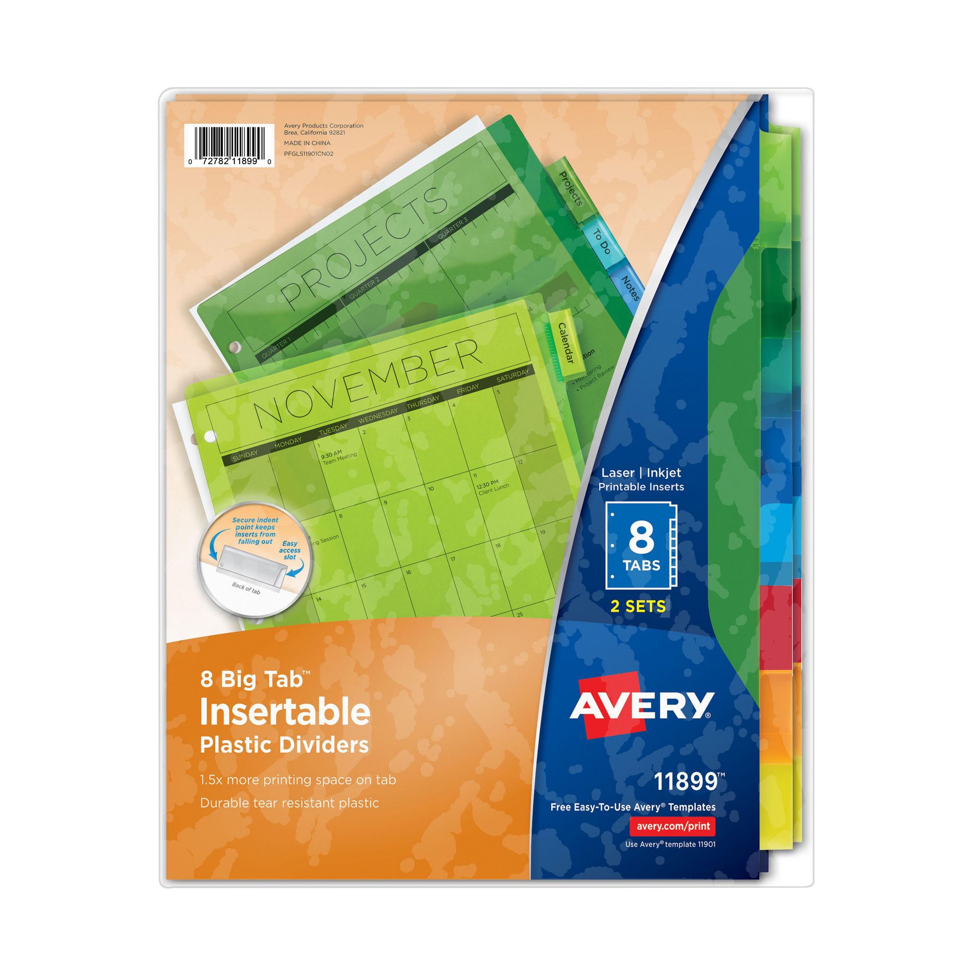 These sturdy tab dividers are made of extra durable tear-resistant plastic that wipes clean with most non-abrasive household cleaners. The big tab design provides 50% more writing space than standard tabs. A special tab design keeps inserts secure and easy to access.