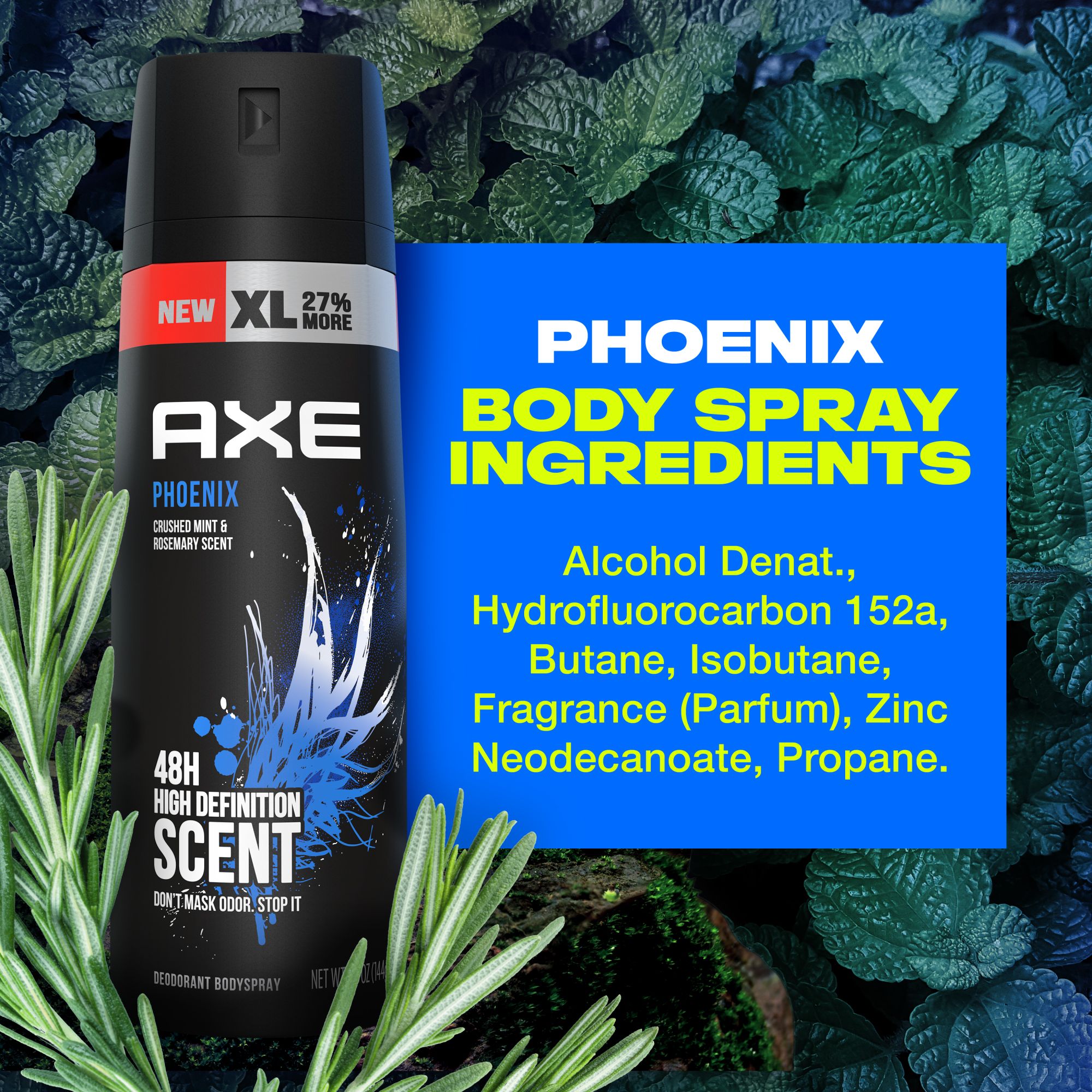 It is a classic, fruity fragrance featuring lavender, geranium and citrus. Its earthly composition and subtle blend of wood and fruit refresh the senses. It is the same great scent that you know and love, now with 27% more per can! A few quick sprays of Axe Body Spray for men Phoenix 5.1 oz is all you need. This unique premium deodorant body spray will keep you smelling great all day or all night. First twist the cap and then target your body and neck for a lasting great smelling fragrance that makes a lasting impression.