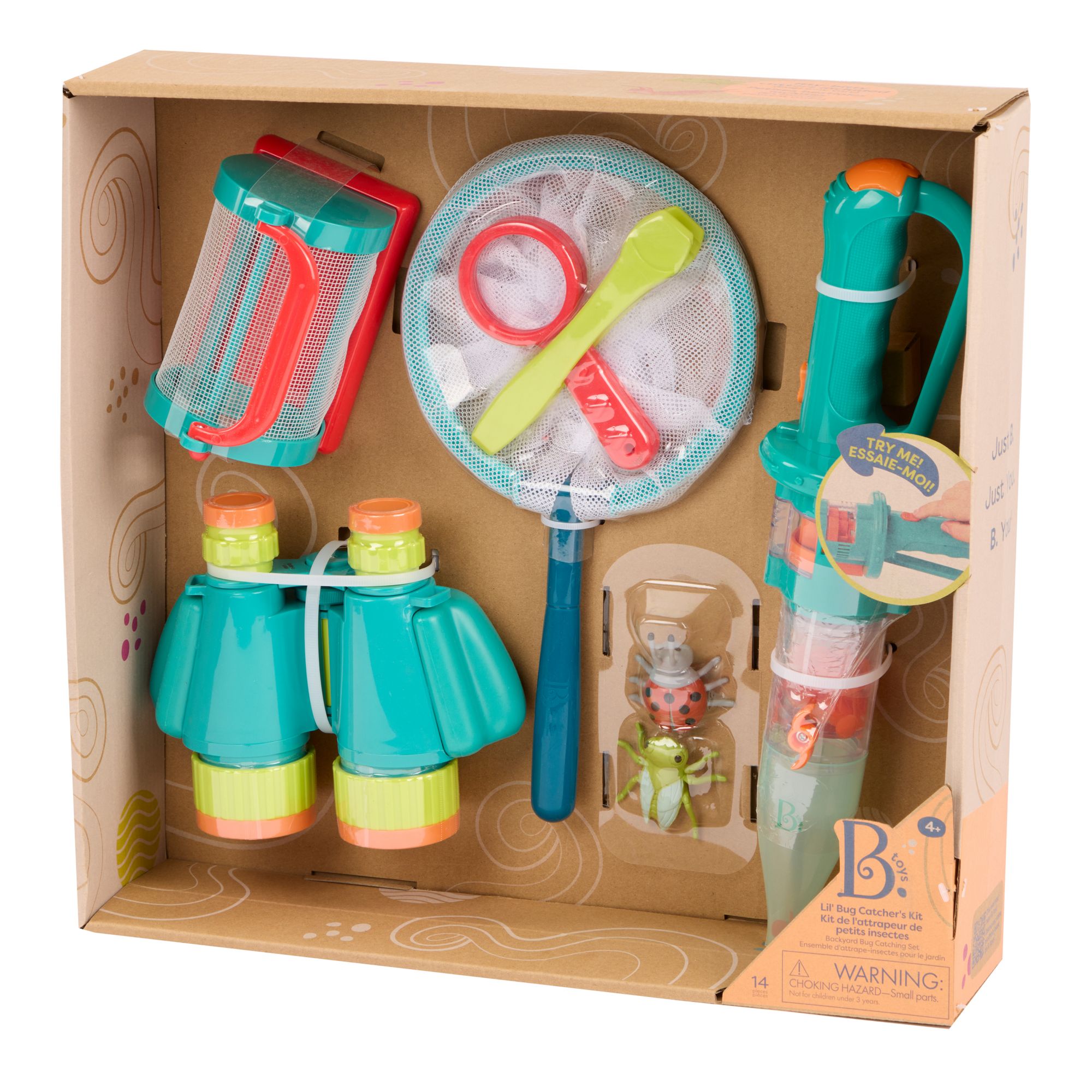 Includes: This backyard exploration set comes with a bug vacuum, bug bottle, insect net, toy binoculars, tweezers, a magnifier, bug grabbers, and two toy critters