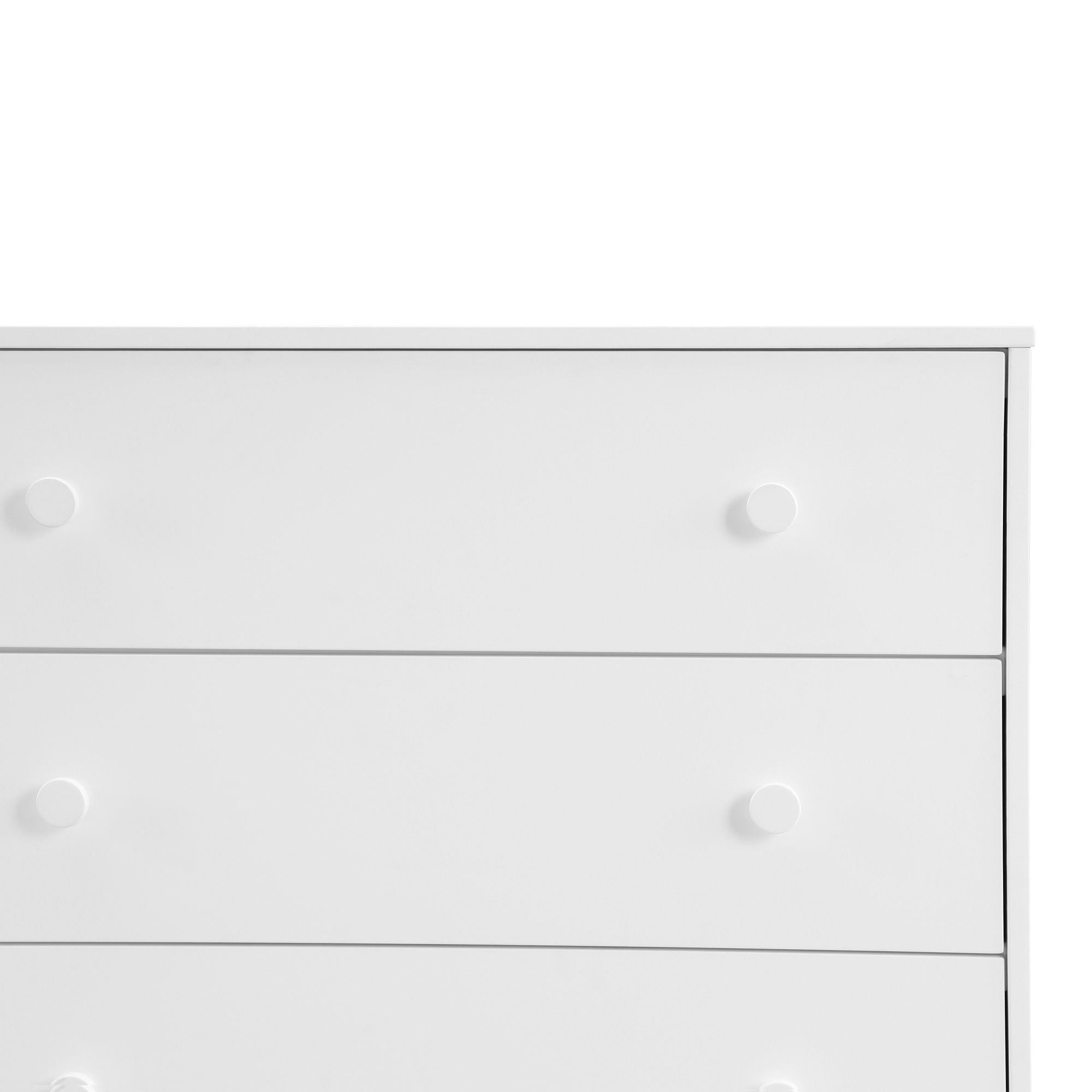 Versatile storage: This dresser features three drawers for plenty of storage space All colors feature a cool two-tone look with contrasting colored knobs (except the Bianca White color)