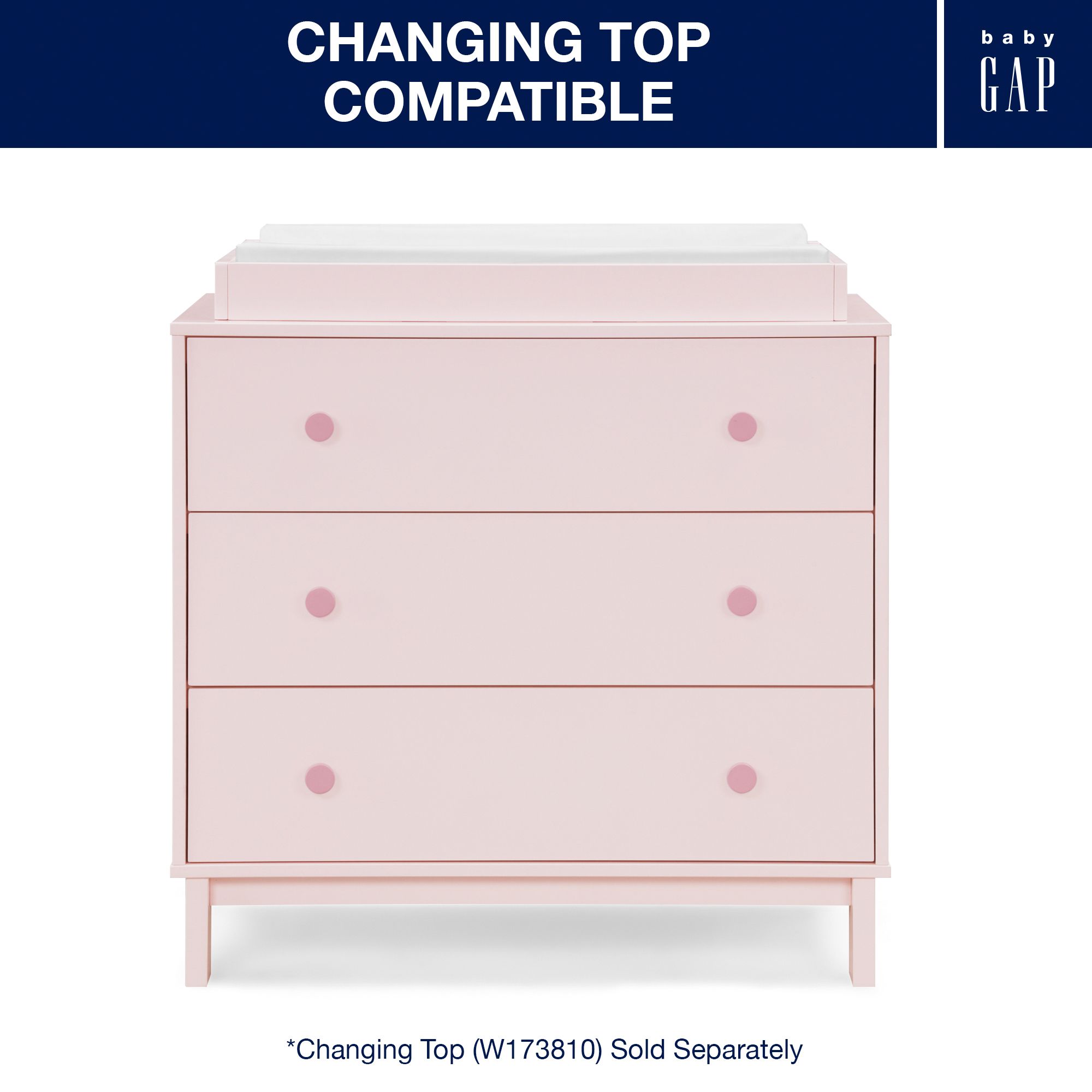 BabyGap by Delta Children Legacy 3 Drawer Dresser - Blush Pink/Dark Pink