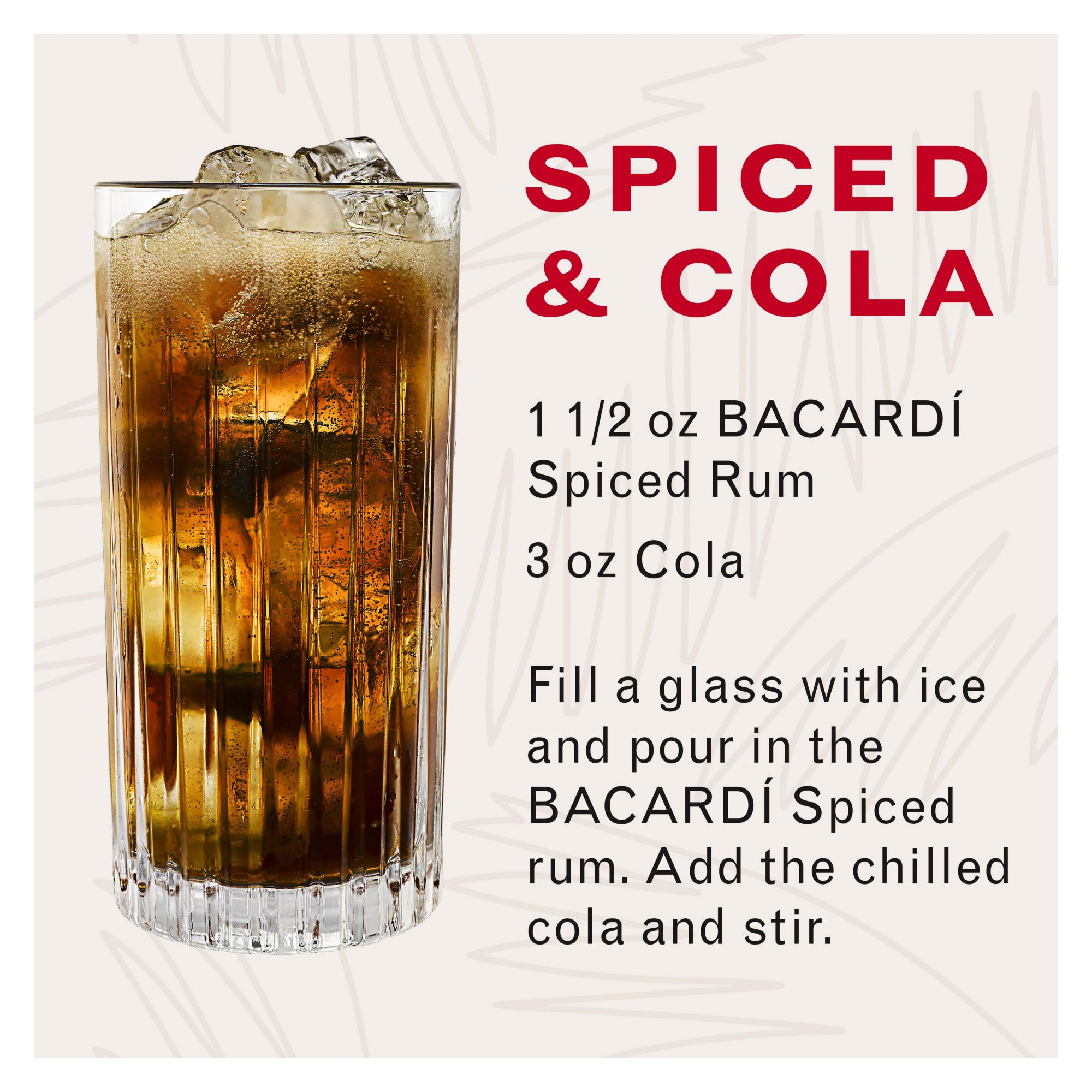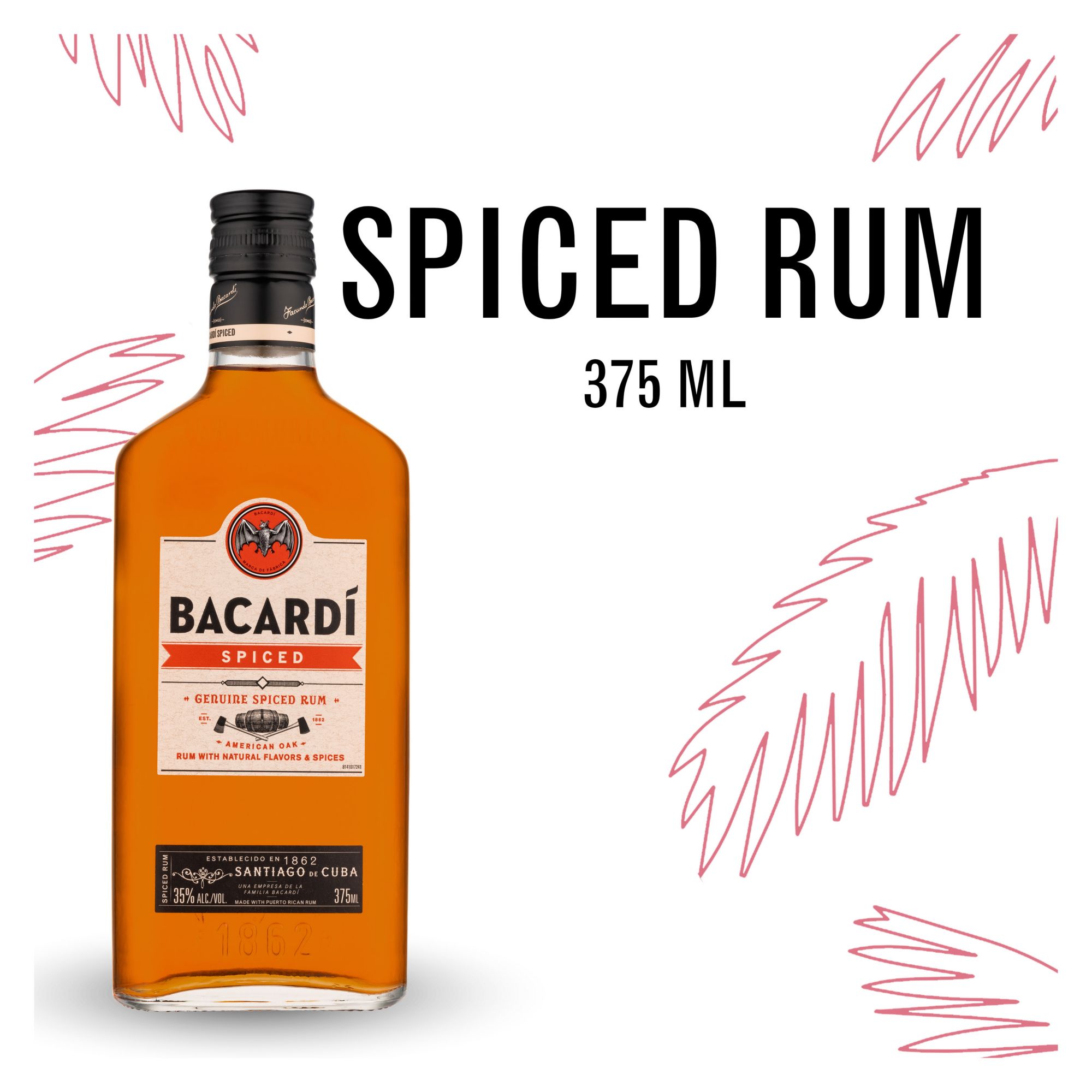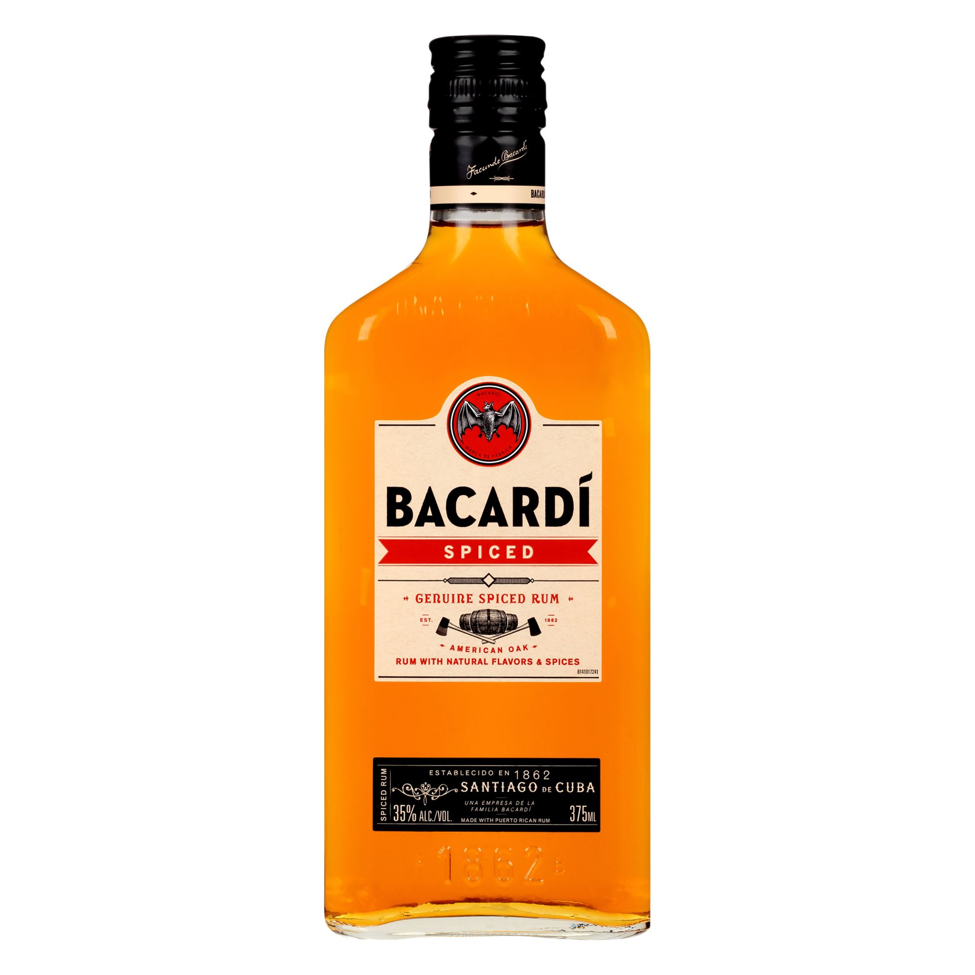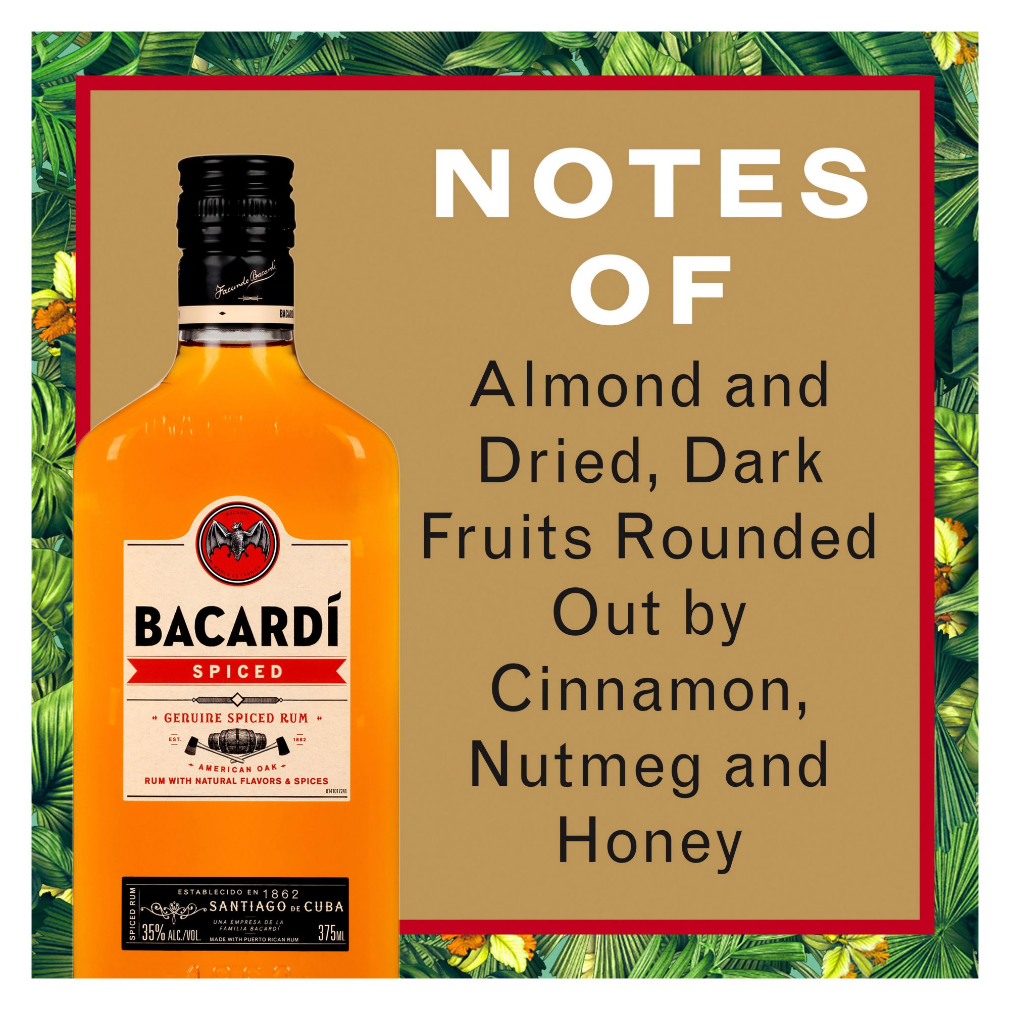 Made with aged rum and with a hint of smokiness from charred American oak, Bacardi Spiced rum is blended with natural flavors and a secret blend of spices for a bold, yet smooth taste. Bacardi Spiced's liquid has both light and deep notes, making it perfect for mixing.