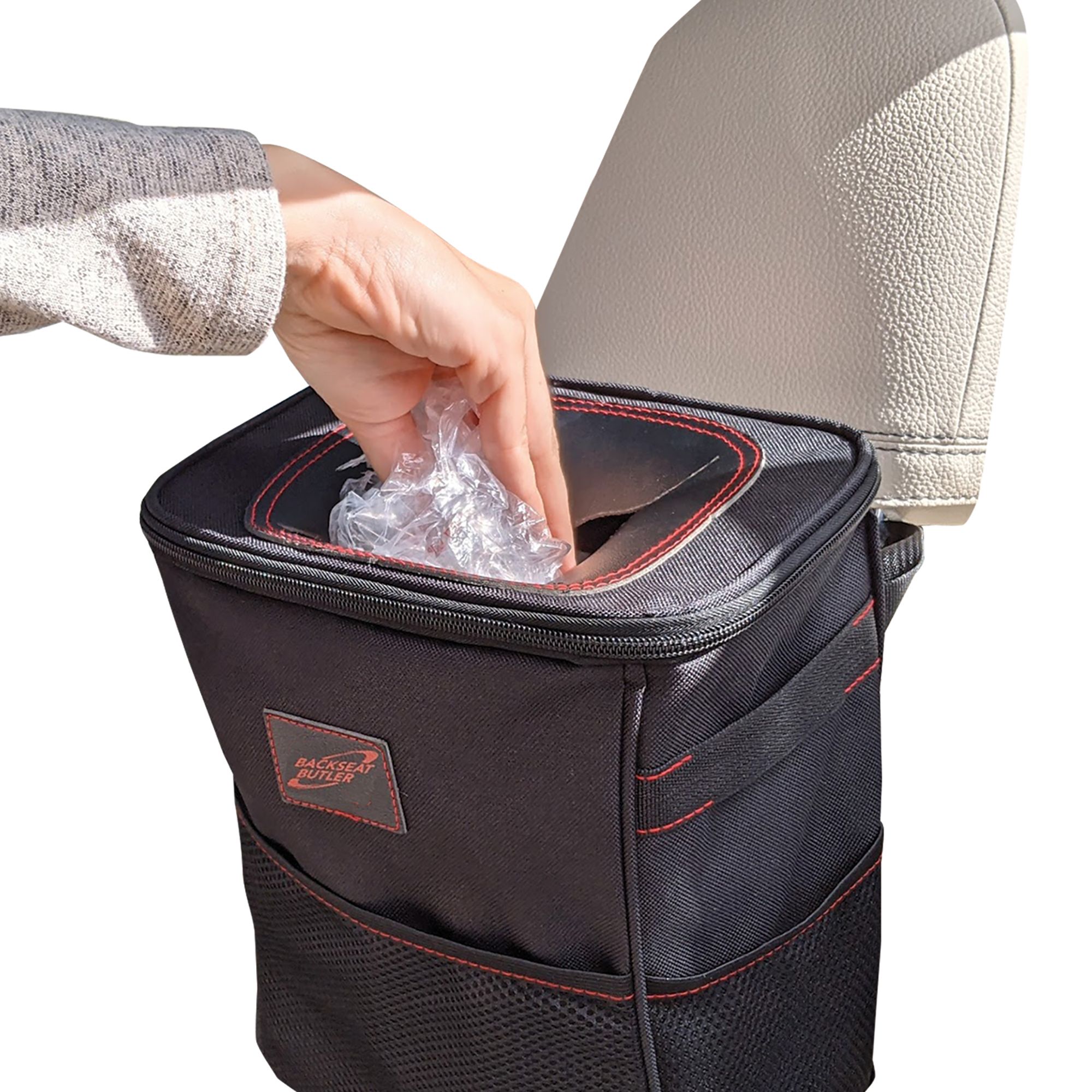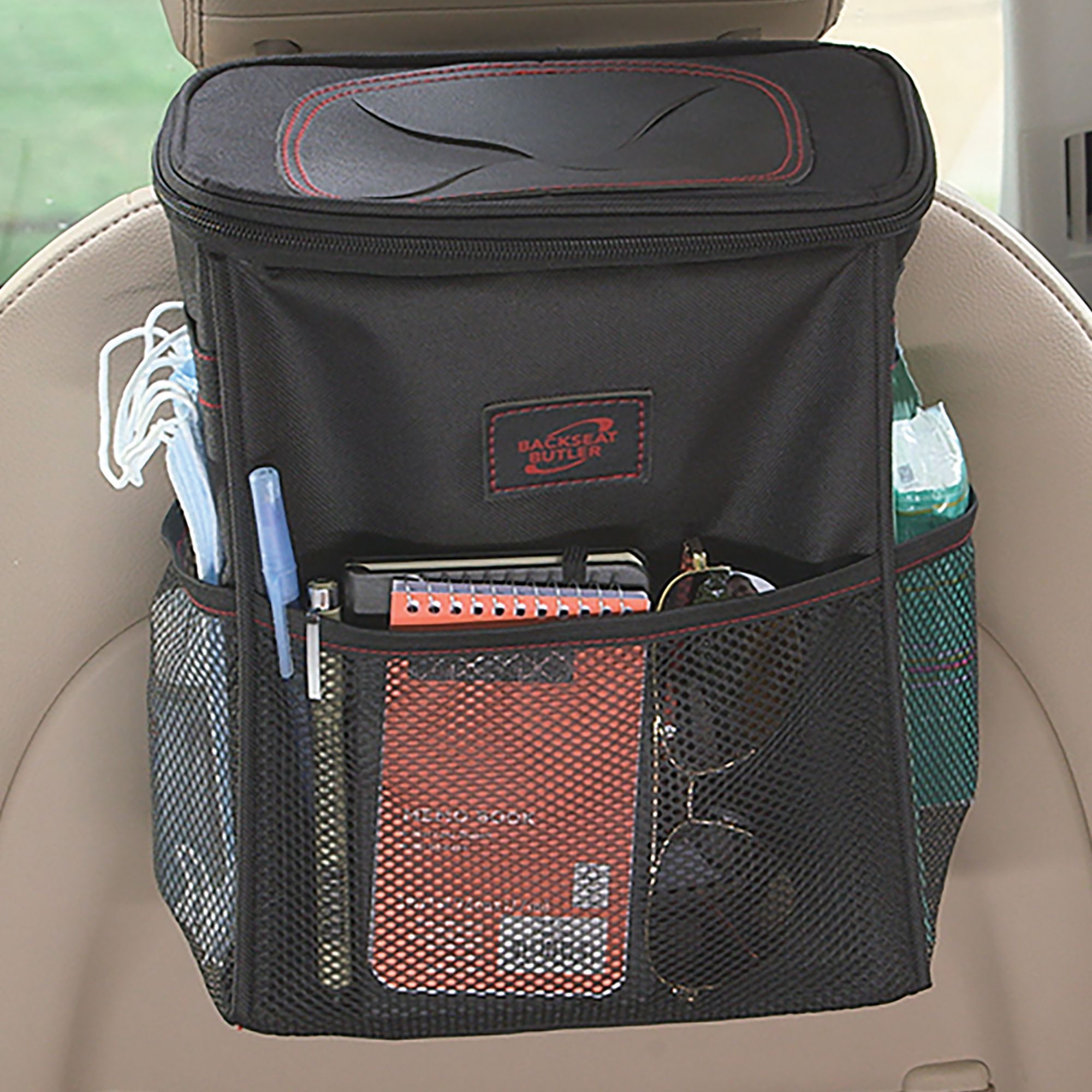 This waterproof trashcan for your car can hold up to two gallons of trash. Its adjustable straps allow it to attach to any seatback or console. It has mesh pockets to store tissues, sanitizing wipes, masks and more. The Backseat Butler is easy to wipe down and is made of stain resistant material.