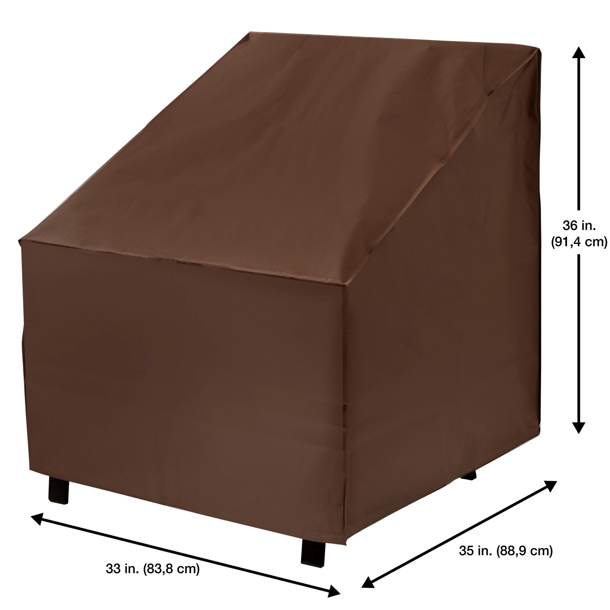 Keep all of your patio chairs covered and safe from the outdoor weather conditions including dirt, dust, pollen, sap, snow and rain all year long. This Oversized Chair Cover by Backyard Basics is a stylish mocha color that will look great with your decor. It’s manufactured with heavy-duty, long lasting woven polyester. The material has double-stitched seams and is water-resistant, ideal for high moisture climates. It’s also UV protected to help prevent fading and discoloration and resists extreme temperatures. The easy release buckles make it easy to adjust and keeps your cover secured. The air vents reduce condensation and wind lofting. This cover fits most larger chairs up to 36" and is easy to clean with just a use of a soft sponge and lukewarm water.