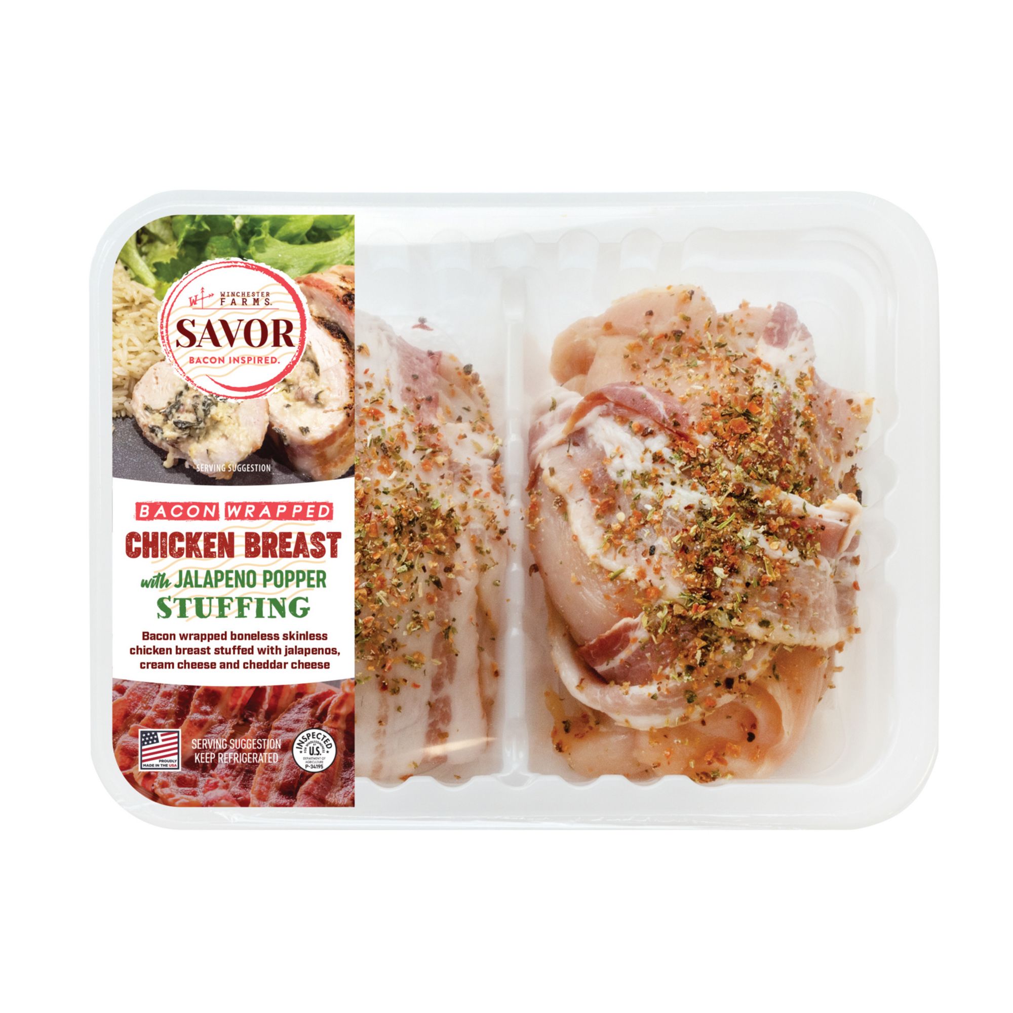 Bacon Wrapped Chicken Breast with Jalapeno and Cream Cheese Stuffing, 1.15-1.7 lbs.