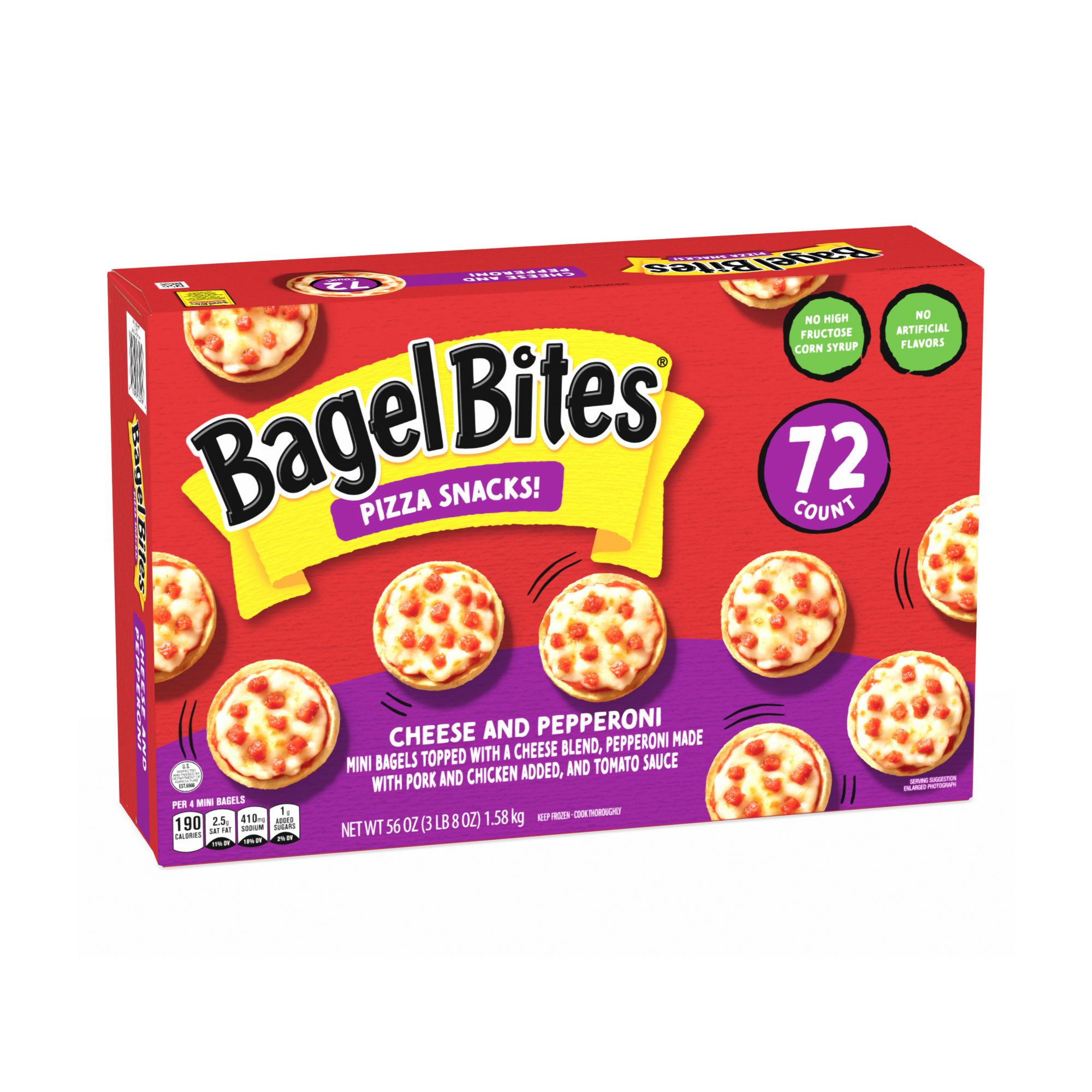 Includes pizza bagel frozen snacks, 72 ct.