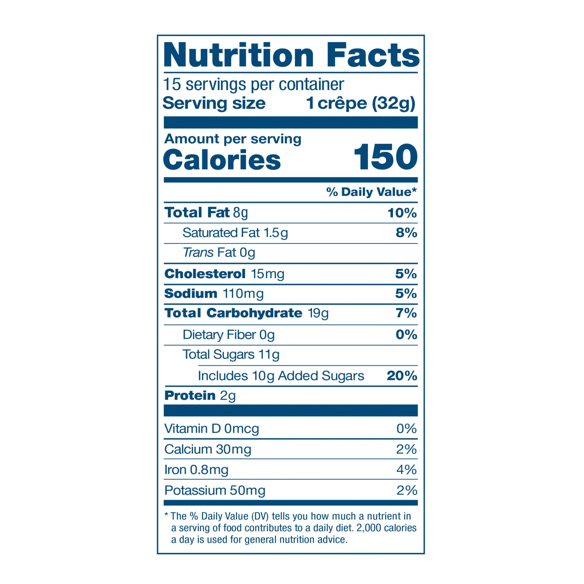 Includes crepes to go snacks, 15 ct.