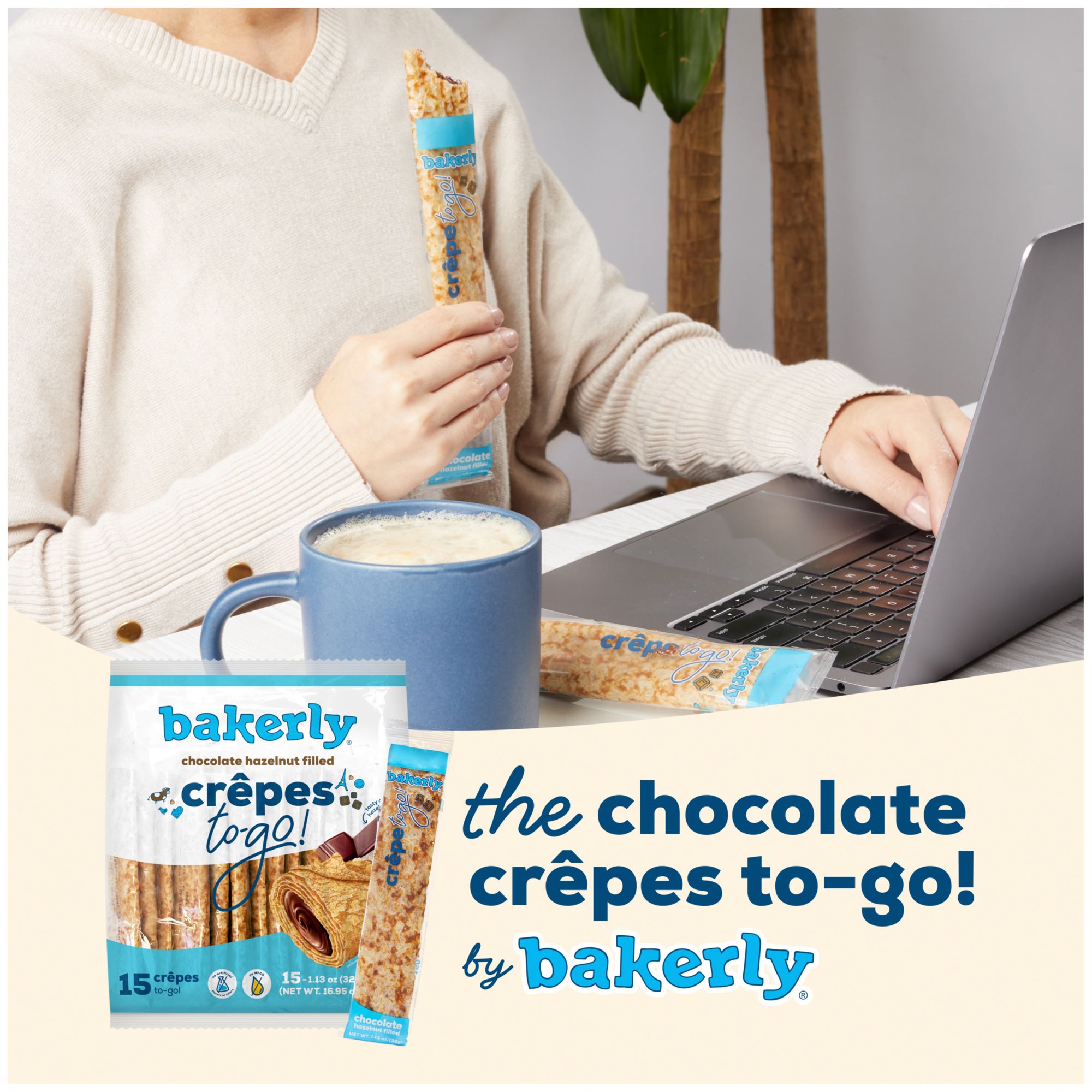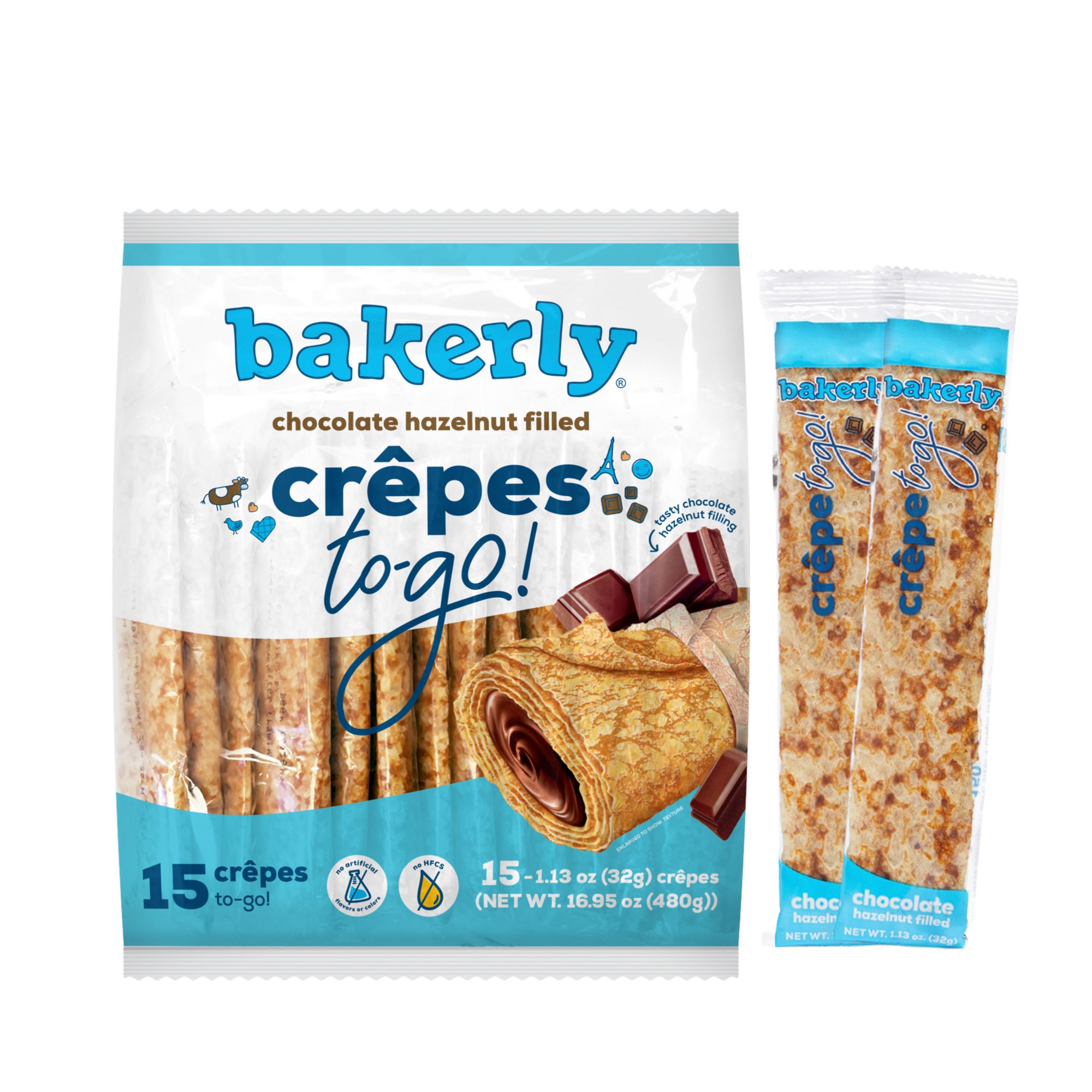 Bakerly Chocolate Hazelnut Filled Crepes To-Go Snacks, Individually Wrapped, 15 ct.