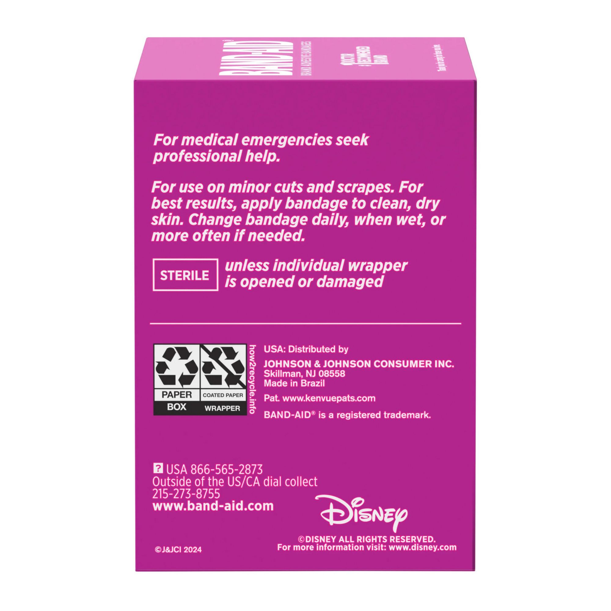 Band-Aid Brand Individually Wrapped Adhesive Bandages feature fun Disney Princesses, Frozen and Encanto character graphics. These first aid sterile bandages for kids cover minor cuts and scrapes for wound care protection. Band-Aid Brand Adhesive Bandages feature a non-stick pad that allows the bandage to stick to the skin, not the wound.