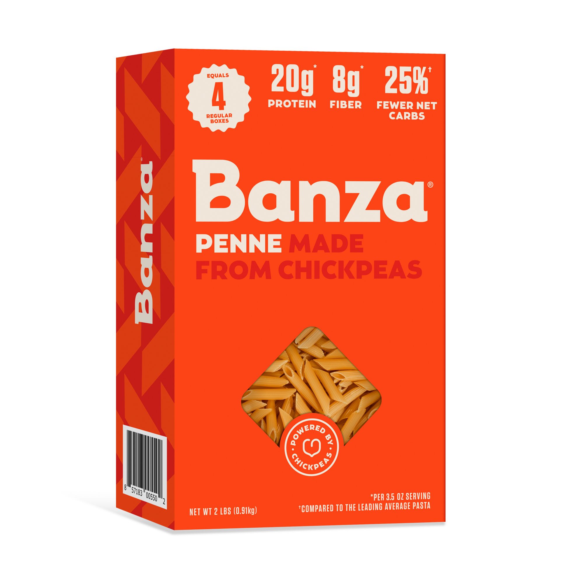 Banza Penne Pasta Four-Pack, Gluten Free, High Protein, and Lower Carb Chickpea Pasta, 2 lbs.