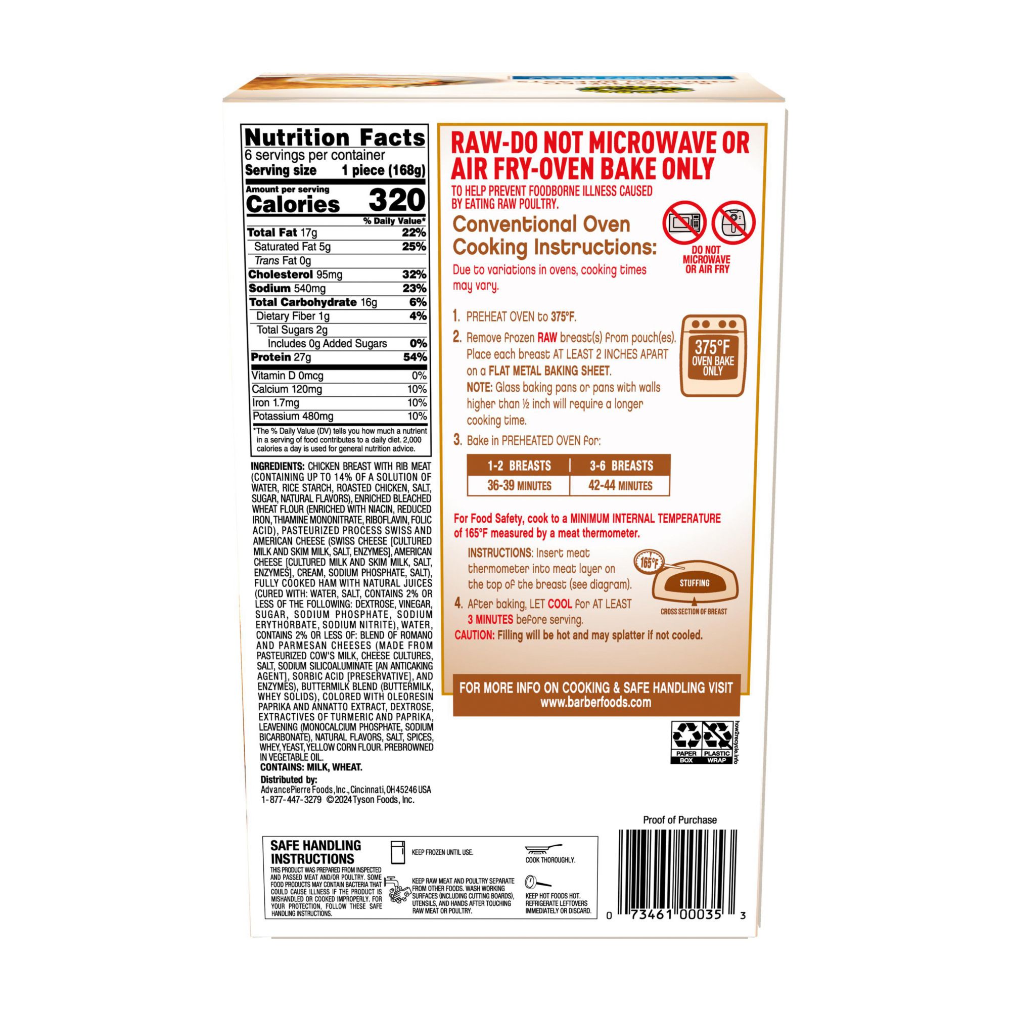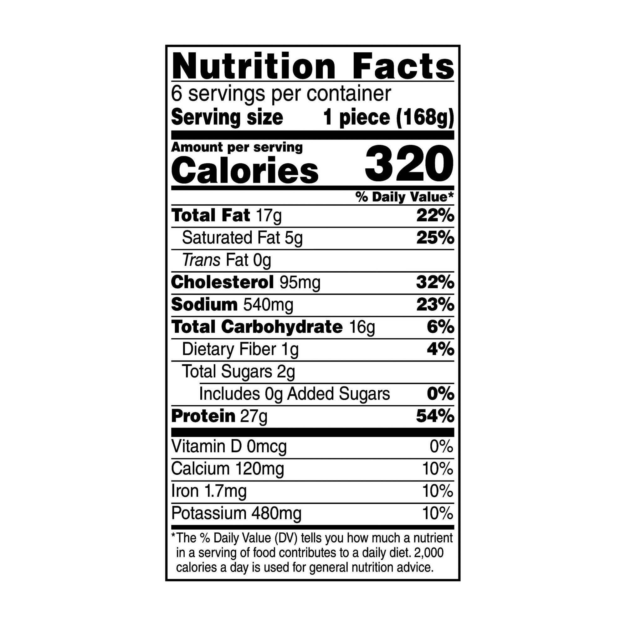 Includes six 6-oz. stuffed pieces of chicken
