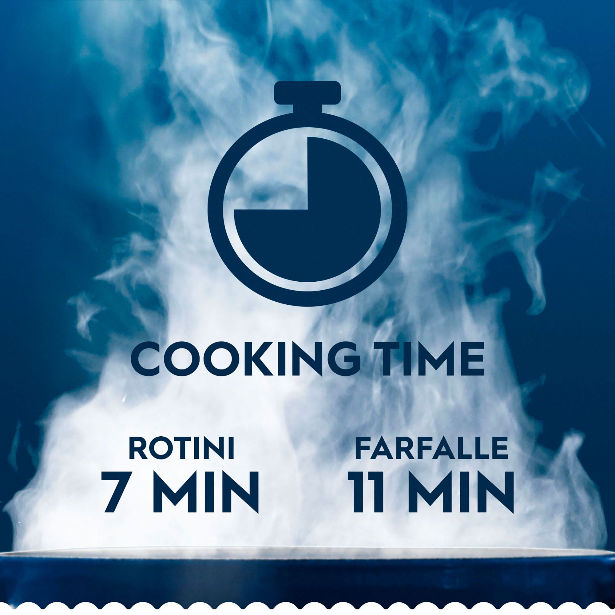 Rotini easily cooks in 7 minutes, Farfalle in 11 minutes; simply boil, adding 1-2 extra minutes for more tender pasta, and serve with your favorite sauce